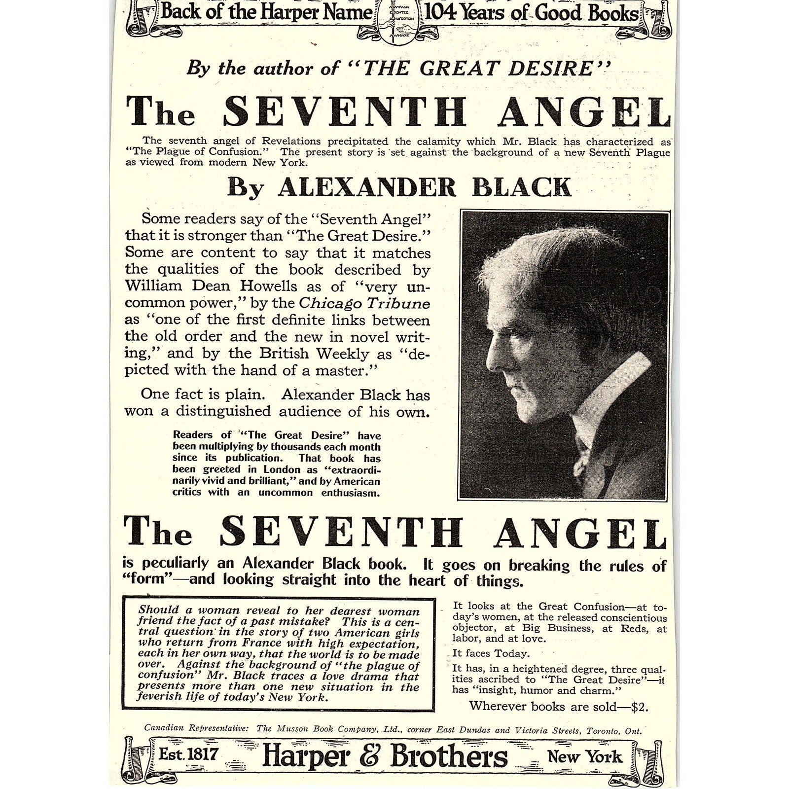 The Seventh Angel Alexander Black c1920 Ad AF8-9