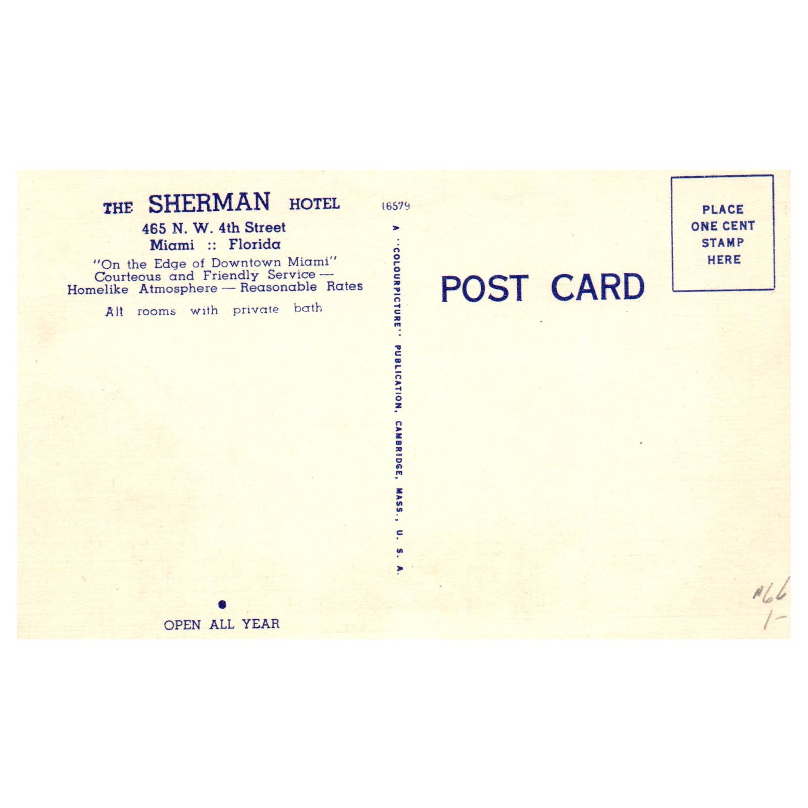 The Sherman Hotel Miami Florida - Postcard TJ8-1