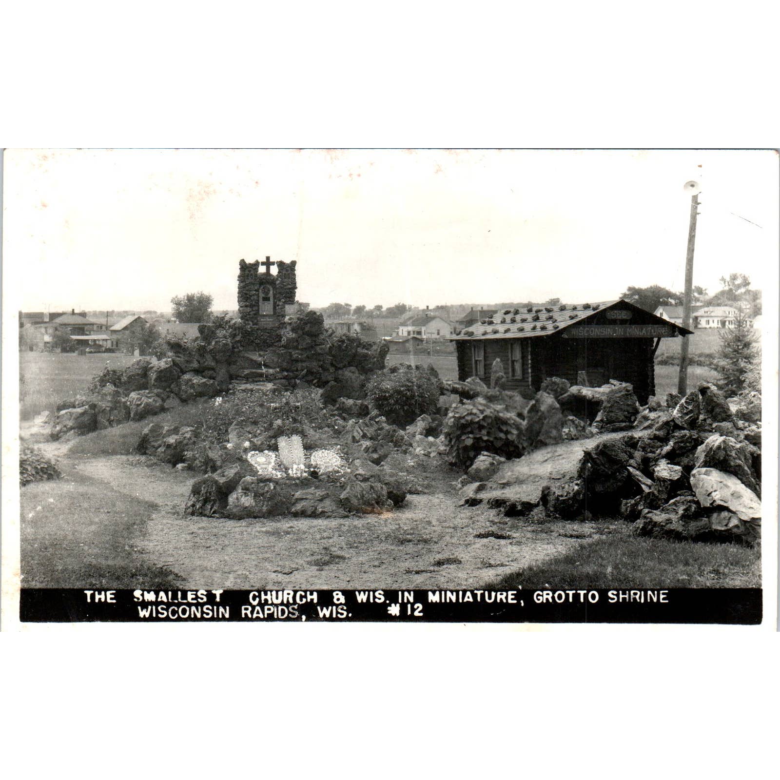 The Smallest Church in WI and Grotto Shrine Wisconsin Rapids Original Postcard TJ9-P3