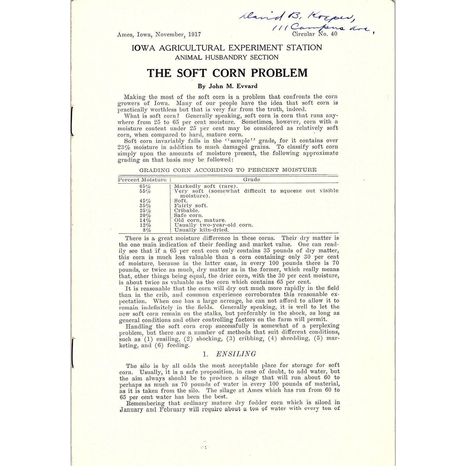 The Soft Corn Problem John M Evvard Ames Iowa Farm Bulletin TK2-XB6