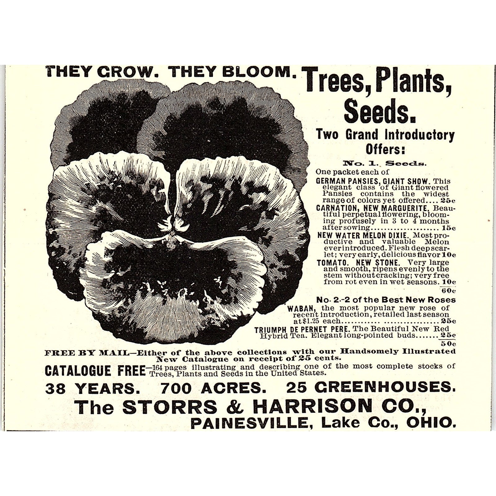 The Storrs & Halverson Co Pansies Seeds Painesville Ohio 1892 Ad AG2-H5