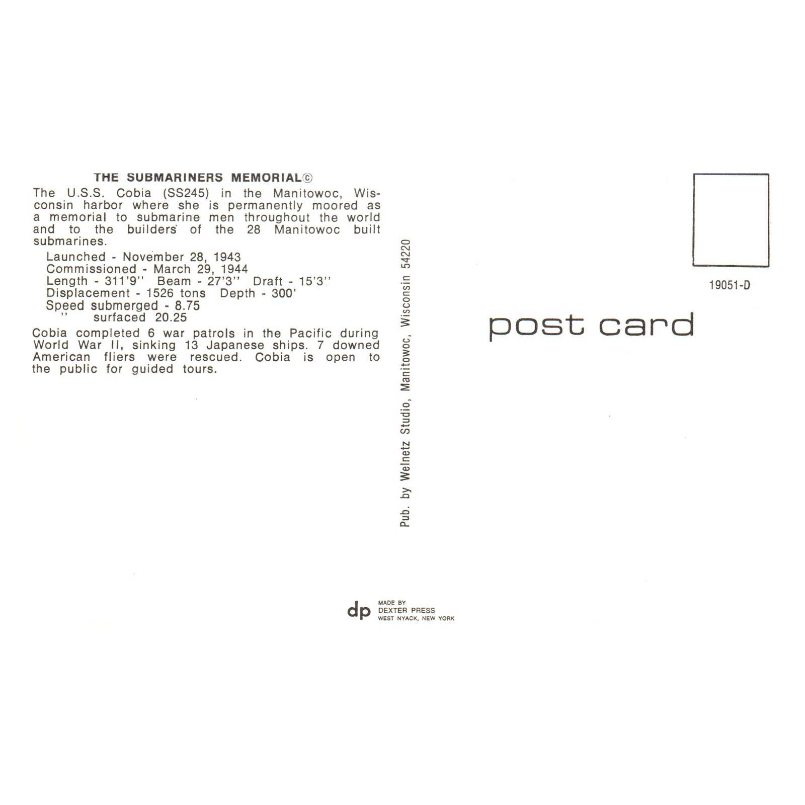 The Submariners Memorial USS Cobia - Original Postcard TJ8-5
