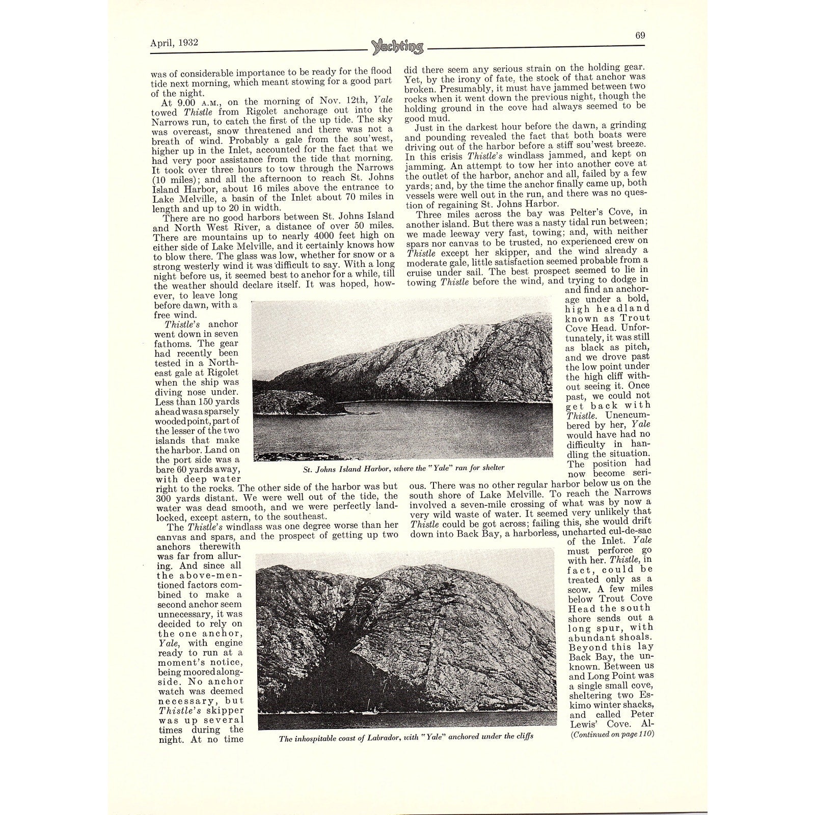 Approx 8.5x11.5". Original piece taken from 1932 Yachting Magazine. May have blemishes you would expect from something this age. See pics for condition.