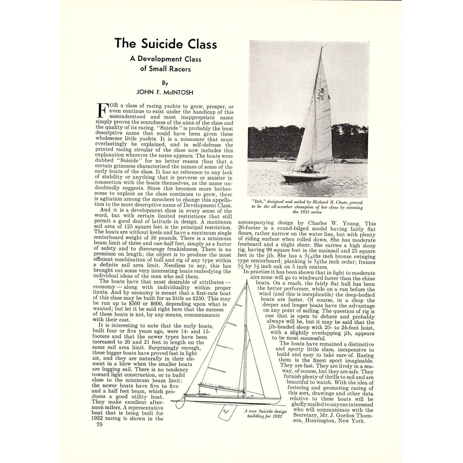 The Suicide Class Small Racing Yachts John F McIntosh 1932 Article V1-4
