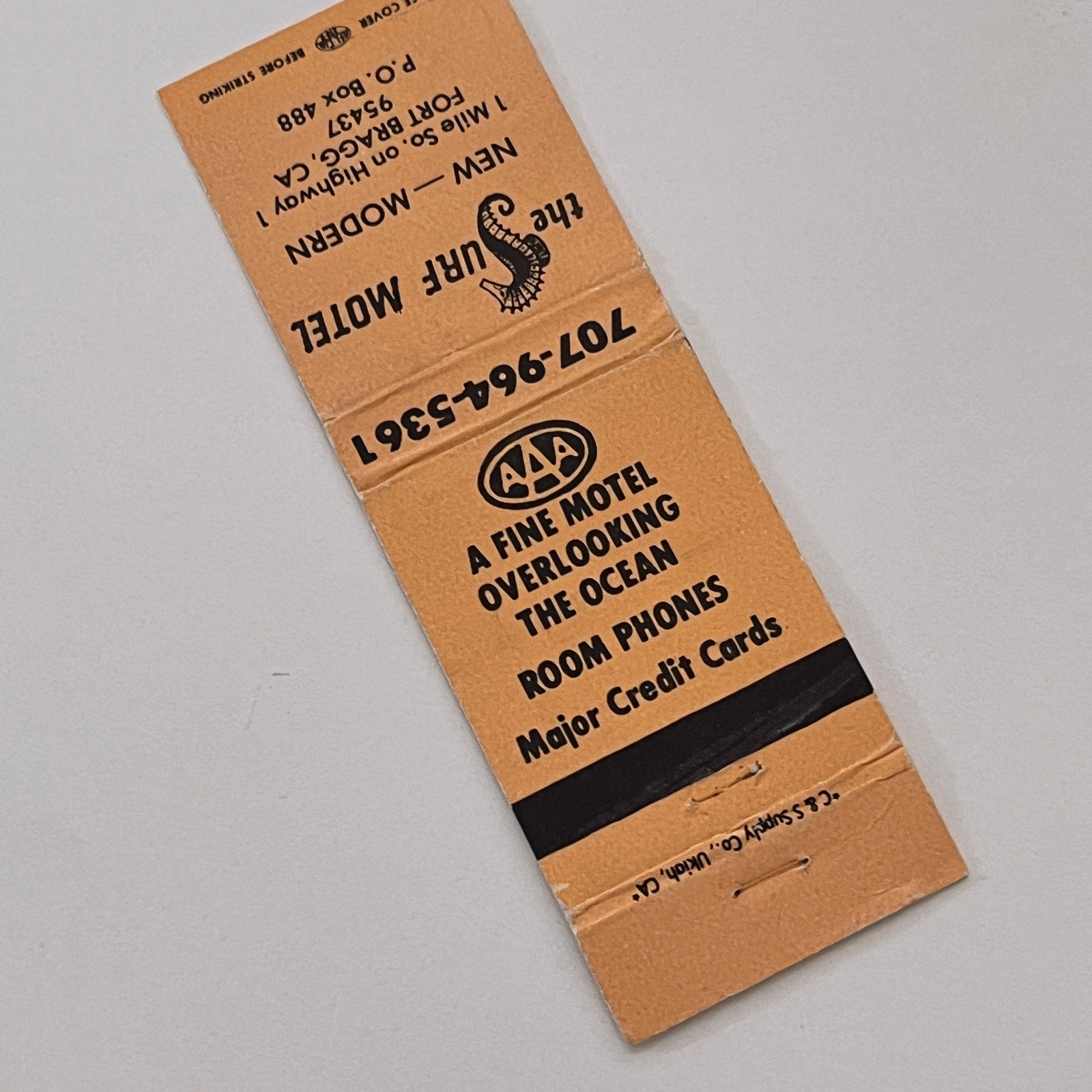 The Surf Motel Fort Bragg CA Vintage Matchbook Cover TB6-MB2-2