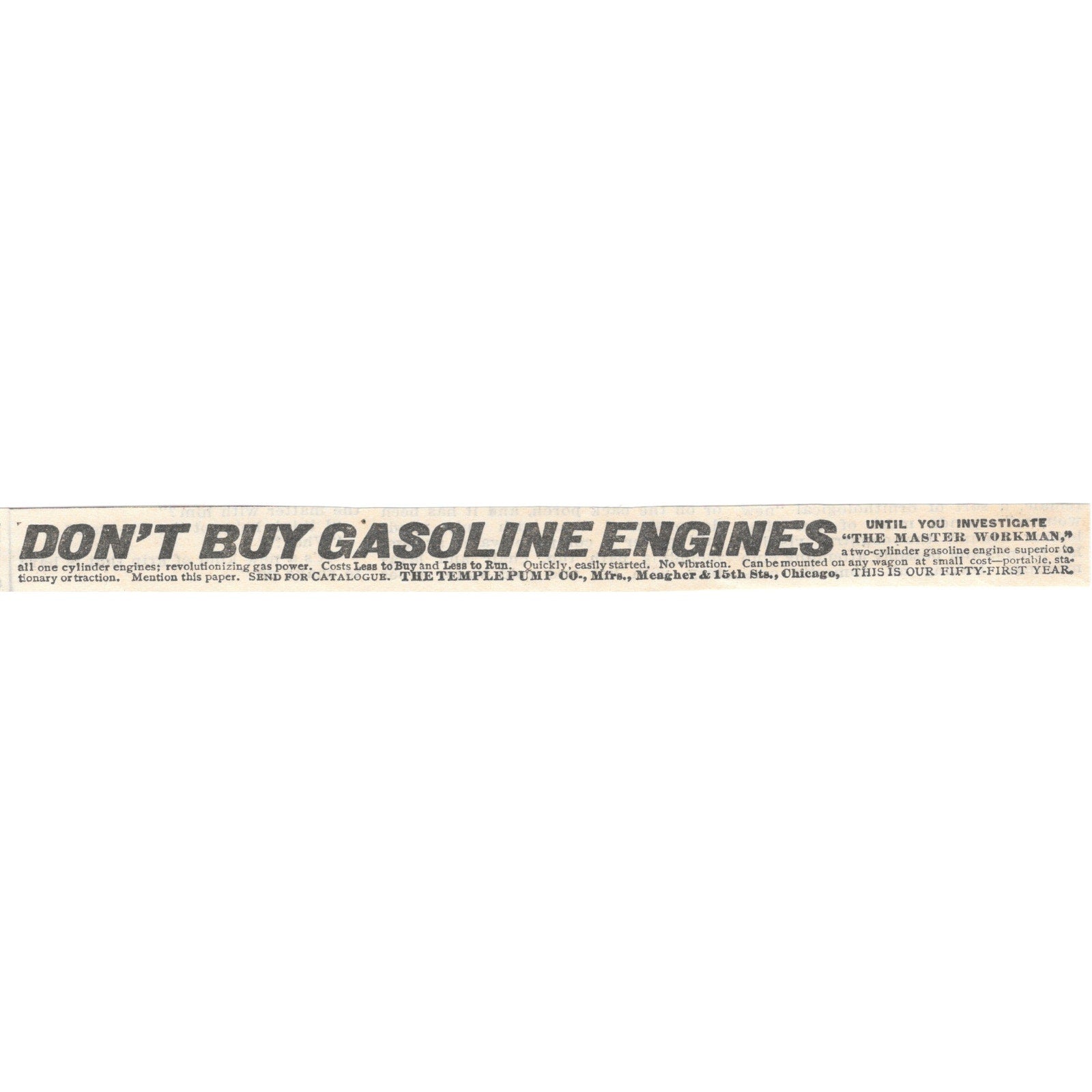 The Temple Pump Co Master Workman Gas Engine Chicago 1905 Magazine Ad AF1-NEH