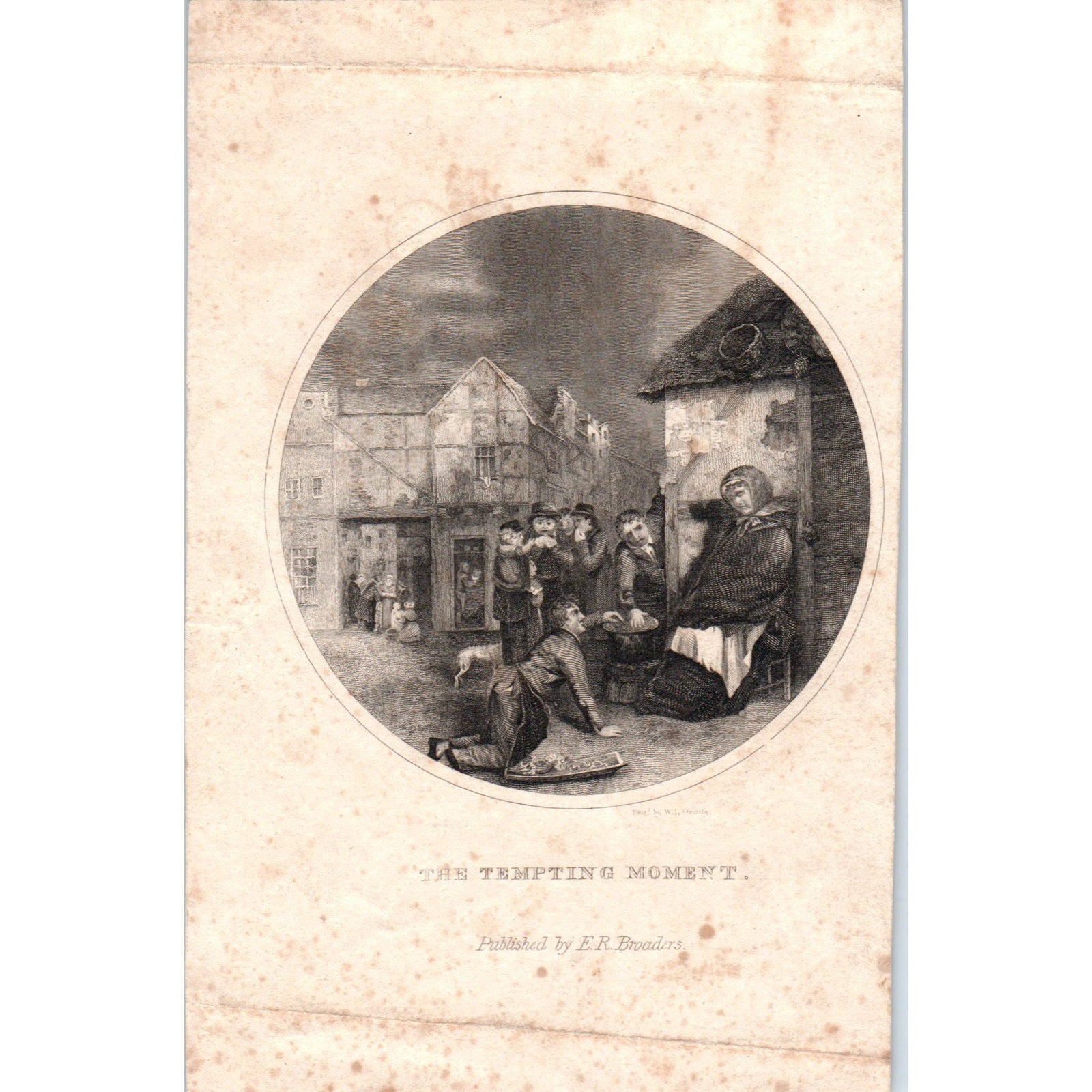 The Tempting Moment E.R. Broaders c1850 Original Engraving 3.75x5.75" AD8-R2
