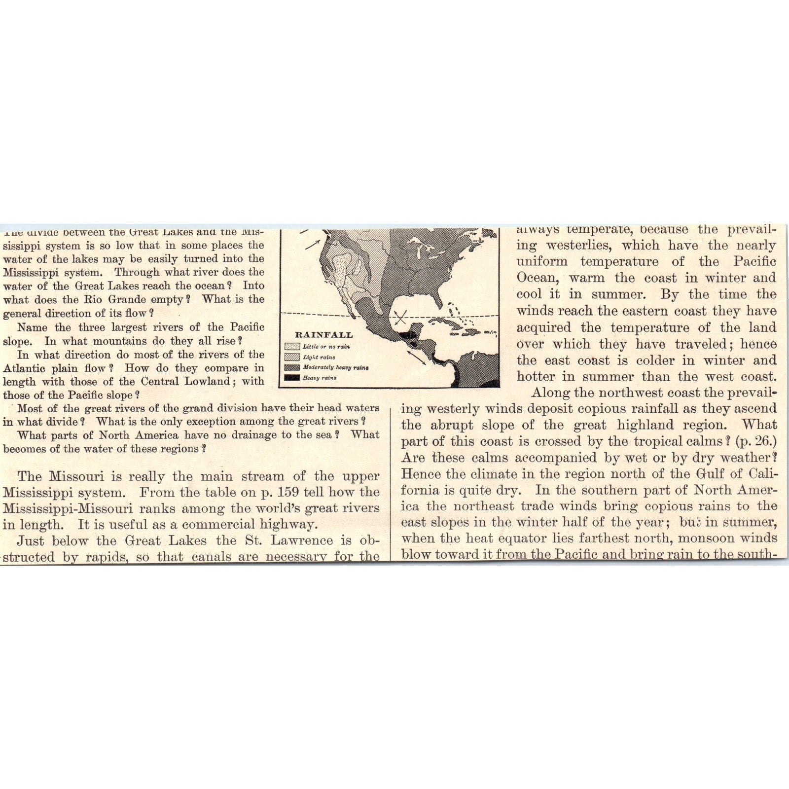 This is a SMALL piece, around 8" wide. If you need an exact measurement please ask. Original engraving pulled from the book Natural Advanced Geography 1901 Jacques W. Redway Russell Hinman. There may be some light staining, tears, and/or other signs of wear and tear. See pics for condition.