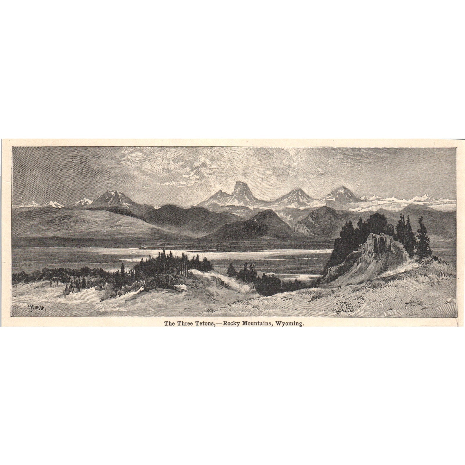 The Three Tetons Rocky Mountains Wyoming 1901 Engraving AF2-A6
