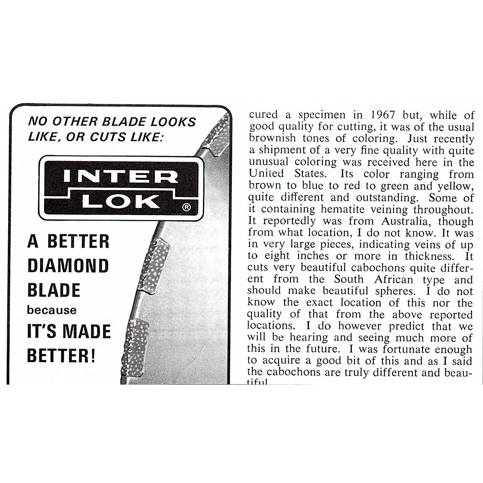 Measures approx 3x5". This is a SMALL Ad, size is approximate. Original piece taken from a 1972 Lapidary Journal magazine. Has regular wear and tear you would expect from a piece this age. See pics for condition.