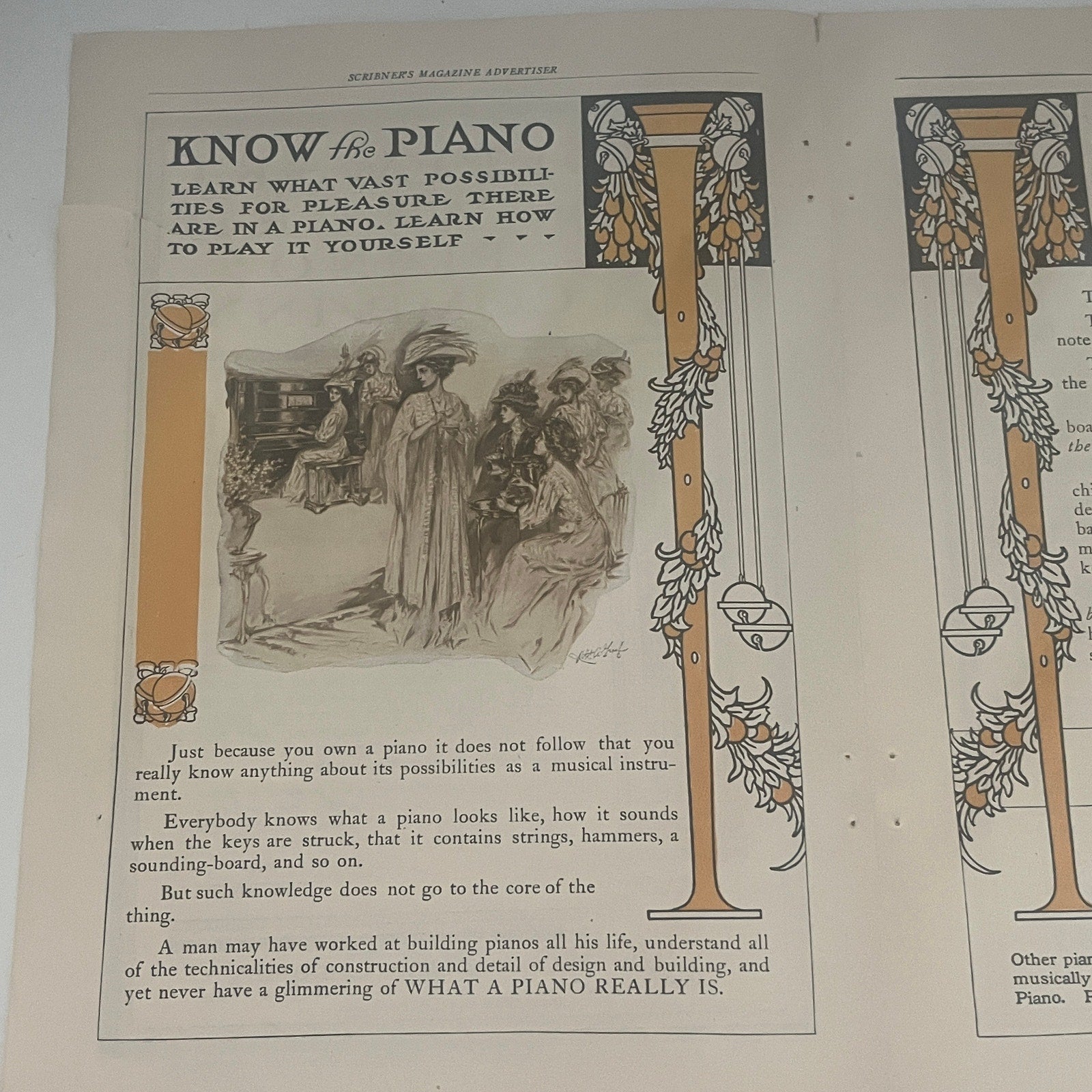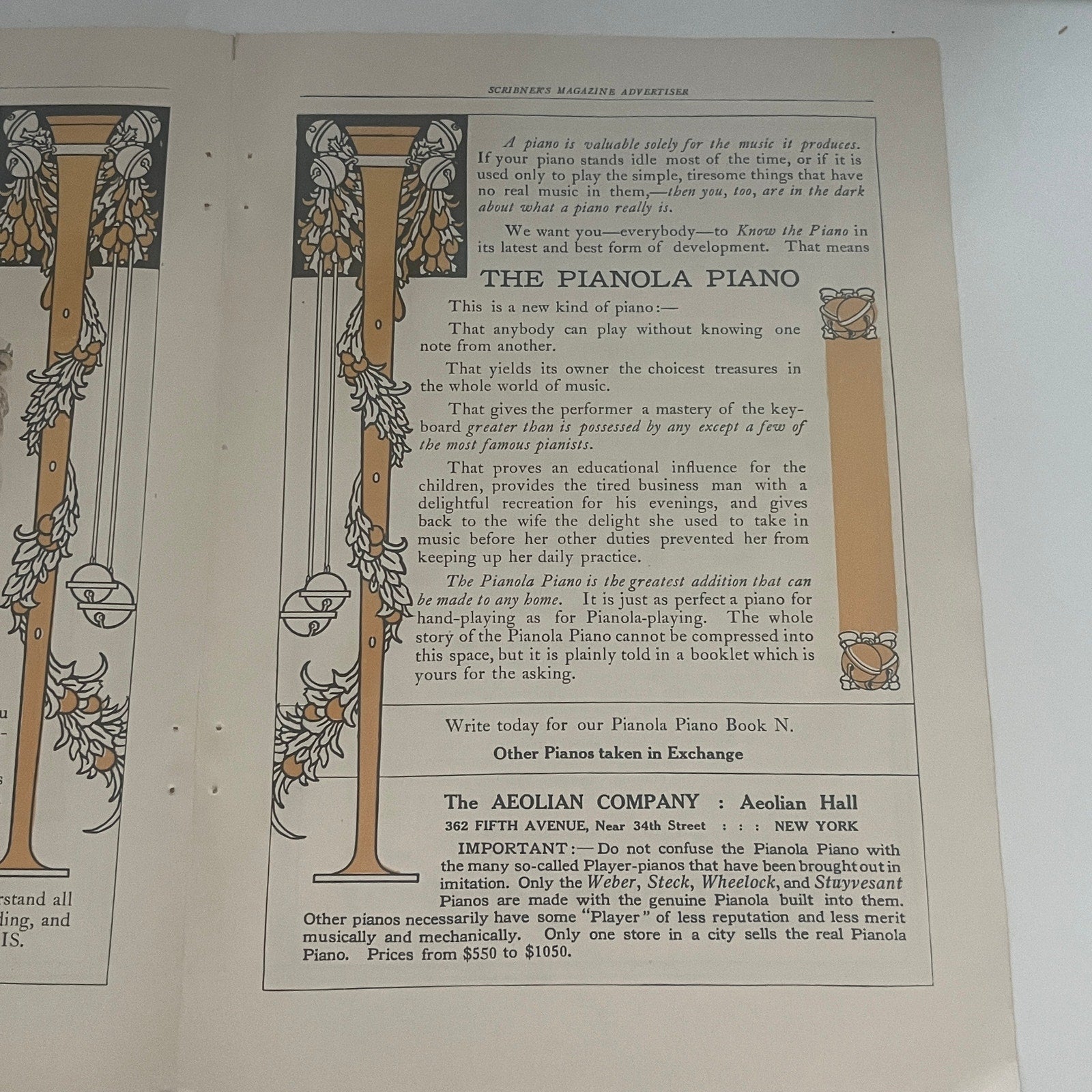 2 Pages - Has a tear on upper right front page, see pics. Measures approx 6x9". If you need an exact measurement please ask prior to ordering. Original piece taken from a 1908 Scribner's Magazine This is an old piece - may have small blemishes, etc that come with age. They may also have small tears, etc around the edges. See pics for condition.