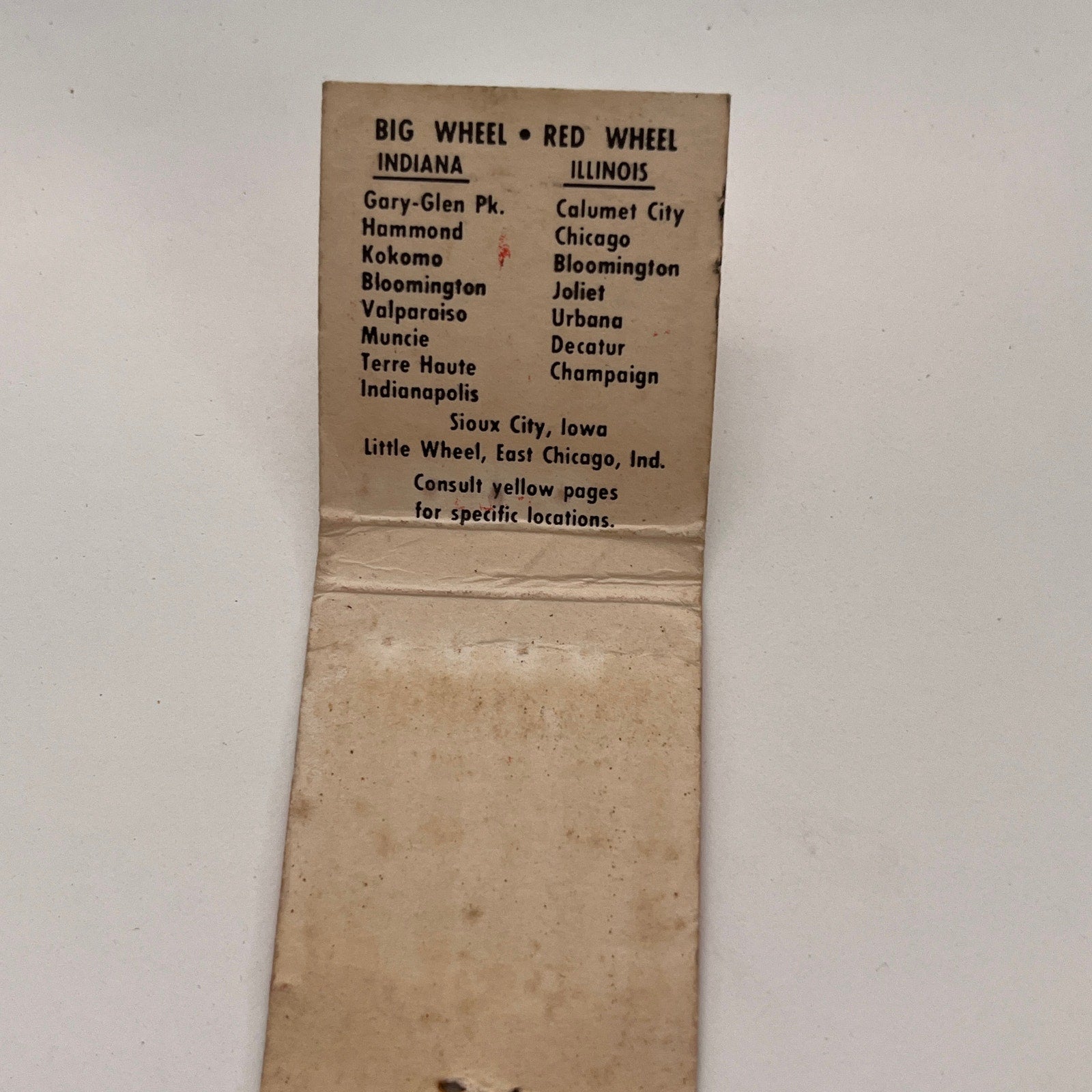 The Wheel Big Wheel Red Wheel Restaurants IL IN Vintage Matchbook TB6-MB2-15