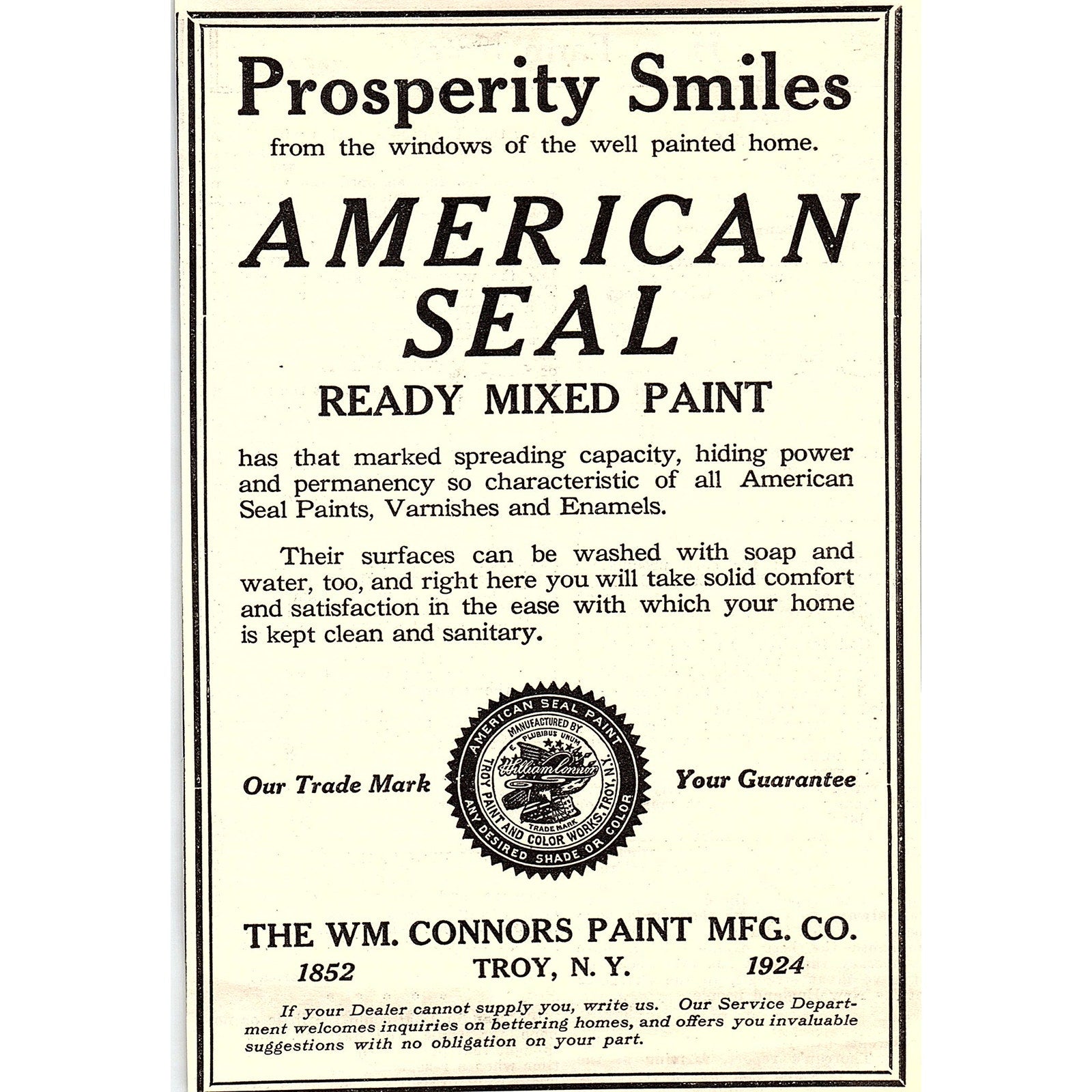 The Wm Connors Paint Mfg Co American Seal Paint Troy NY 1924 Ad AG3-4