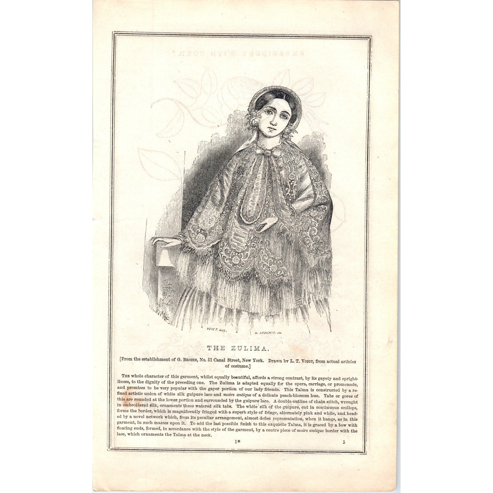 The Zulima Lady's Fashion Plate 1857 Original Engraving D19-1
