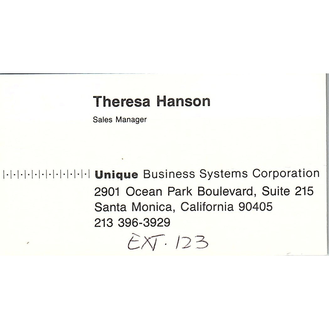 Theresa Hanson Unique Business Systems Corp Santa Monica CA Vintage Business Card SC9-B1