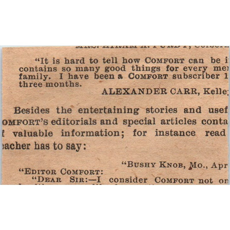 This is a SMALL ad, it measures approx 1x2. If you need an exact measurement please ask. Original piece pulled from the Jan 1910 Comfort Magazine. As this piece is over 100 years old, there are some staining and signs of wear and tear. See pics for condition.