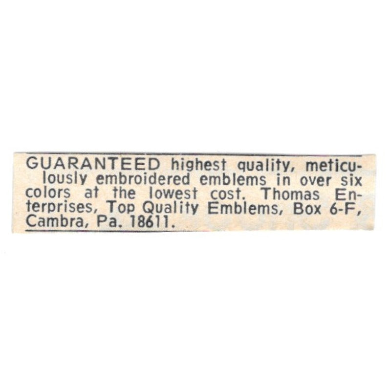Thomas Enterprises Emblems Cambria PA 1977 Ad AF6-S6