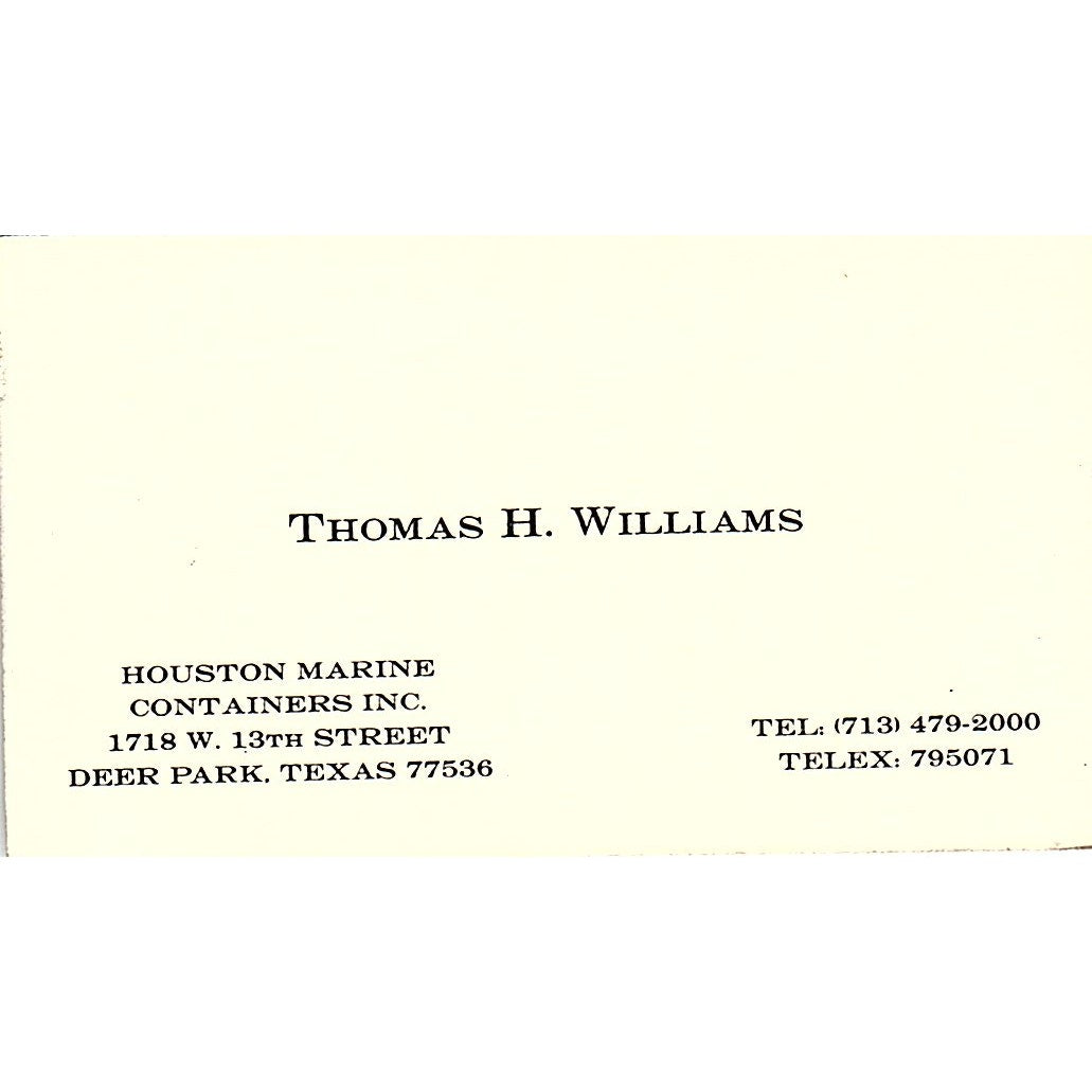 Thomas H Williams Houston Marine Deer Park TX Vintage Business Card SC9-B4