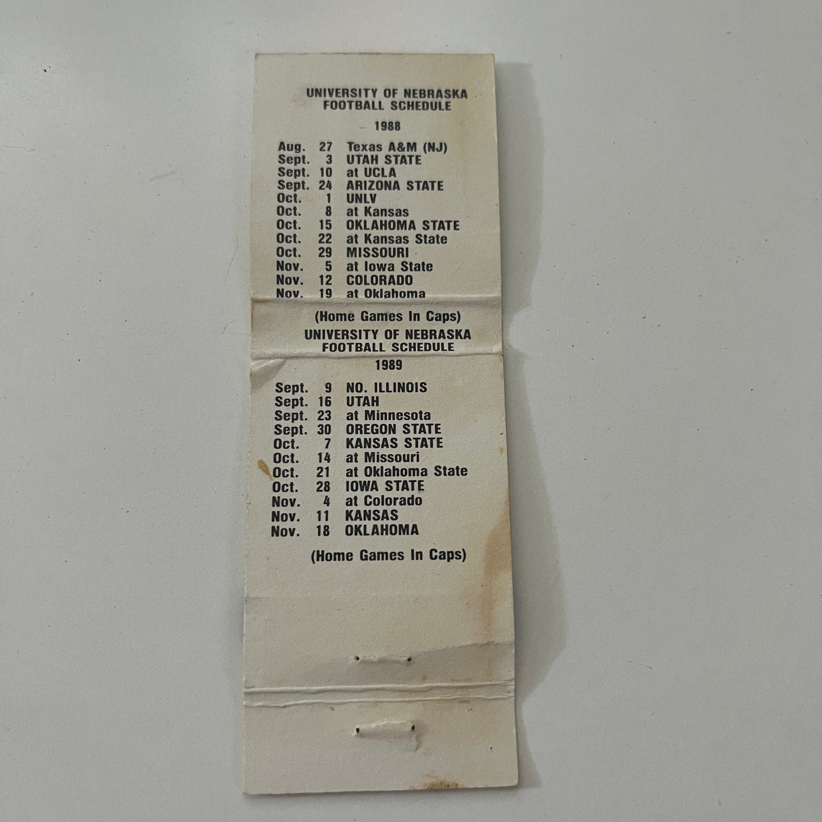 Thomasville Lounge Omaha NE Huskers Football 1988 Schedule Matchbook MB28-2