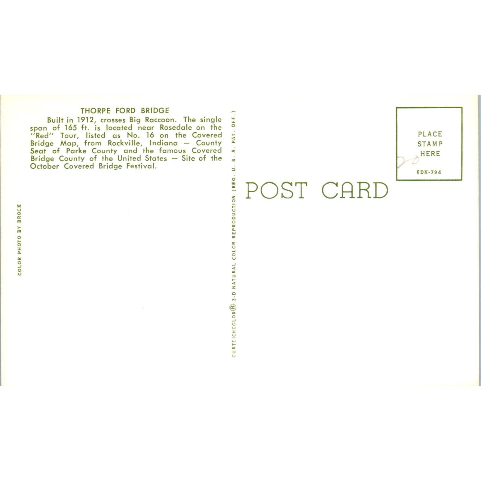 Thorpe Ford Bridge Parke County Rockville Indiana Covered Bridge Postcard PC6