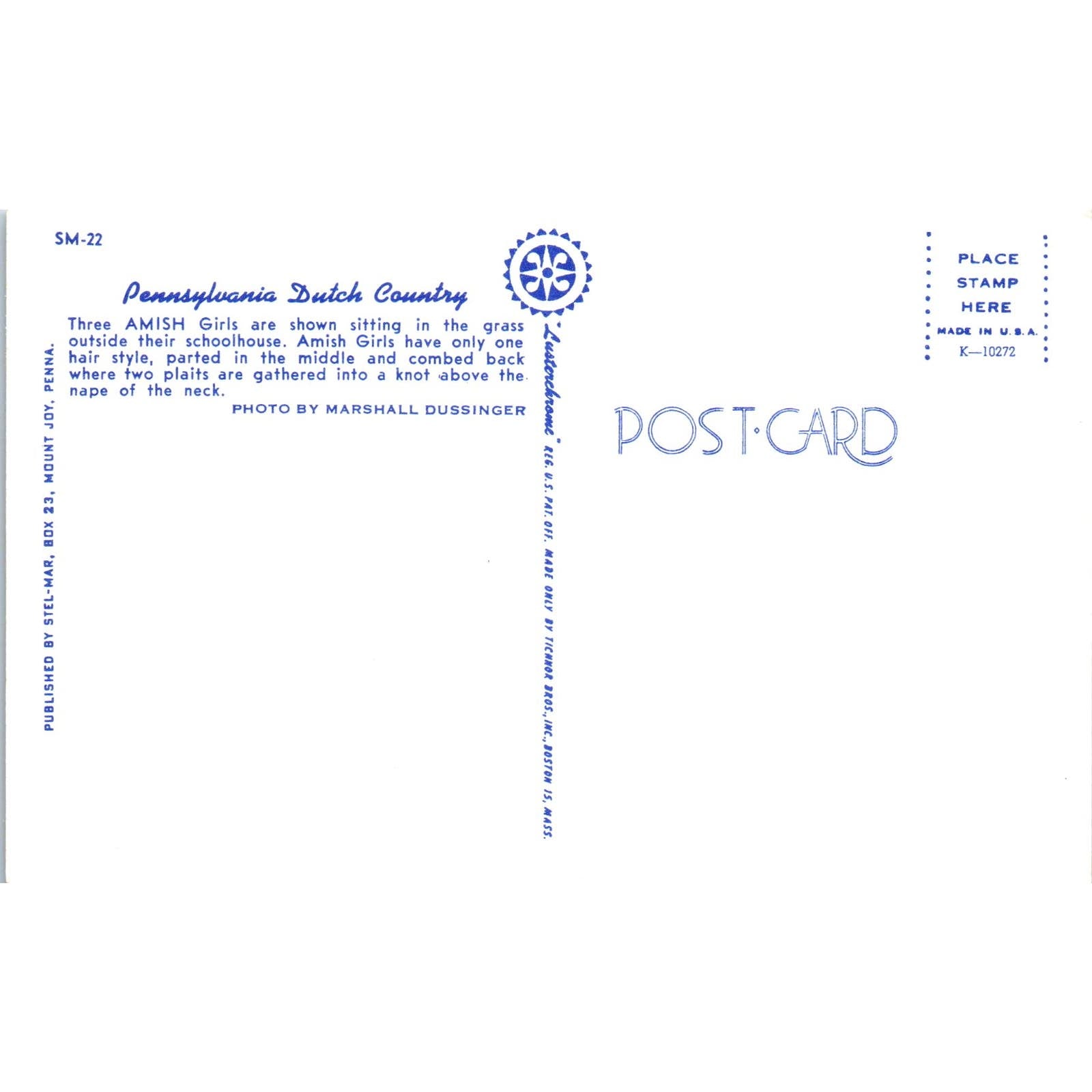Three Amish Girls at School House Pennsylvania Dutch Country Postcard PD8
