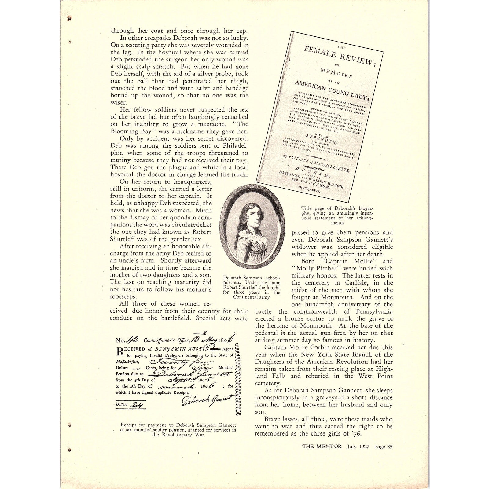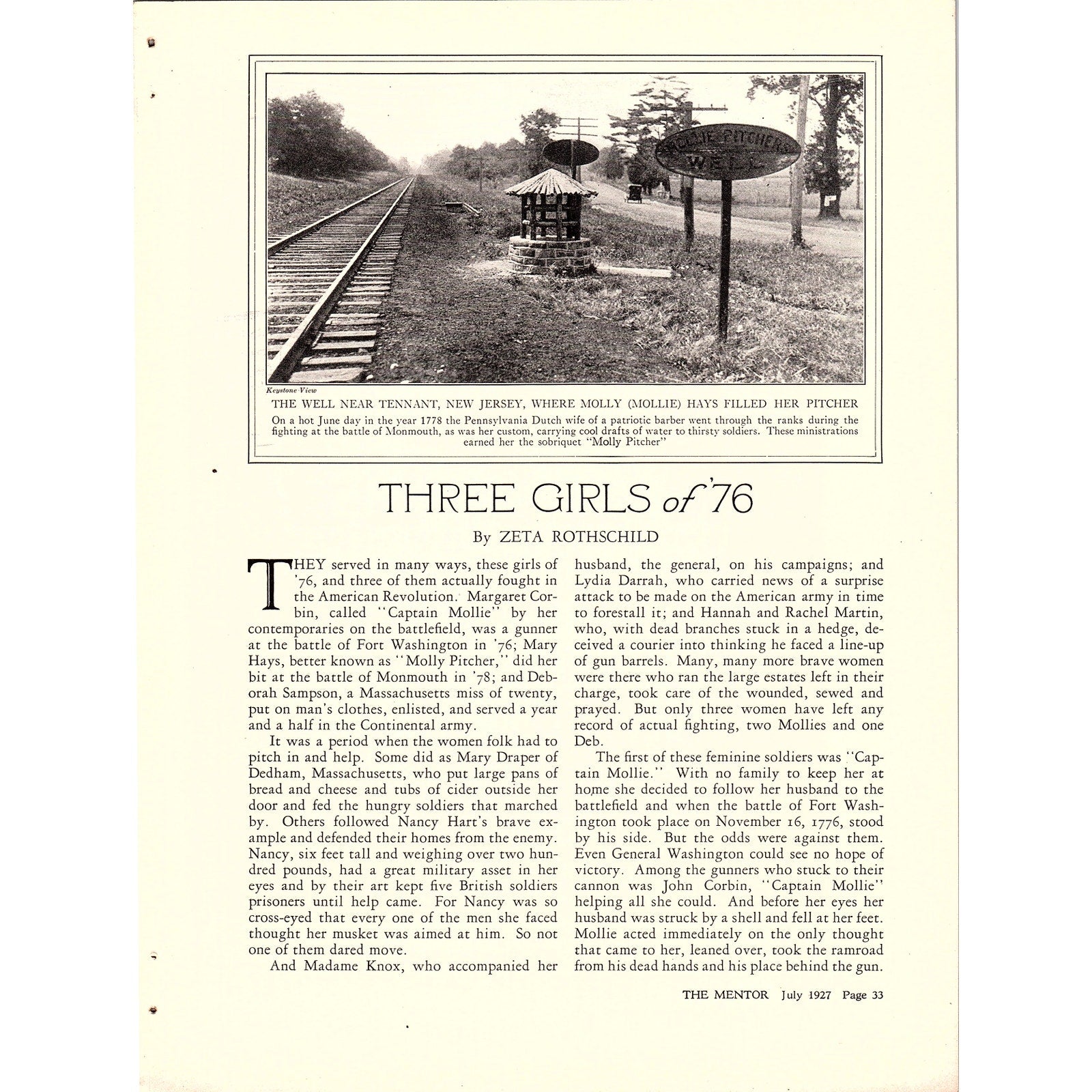 Three Girls of '76 Zeta Rothschild American Revolution 2 Page Article 1927 AG3-5
