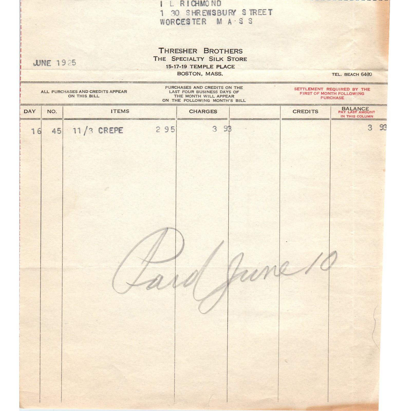 Thresher Brothers Silk Boston MA 1925 Original Billhead Letterhead Receipt D8-LL