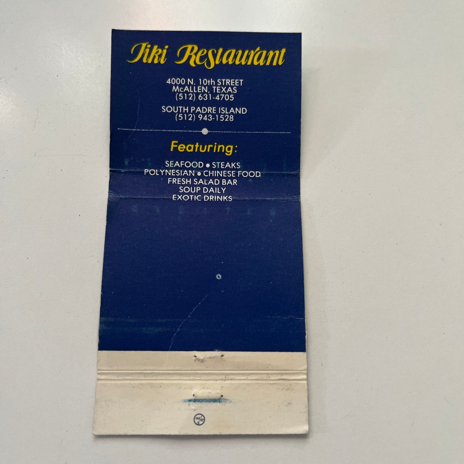 Tiki Restaurant McAllen-South Padre Island TX Vintage Matchbook Cover TB7-UMB5