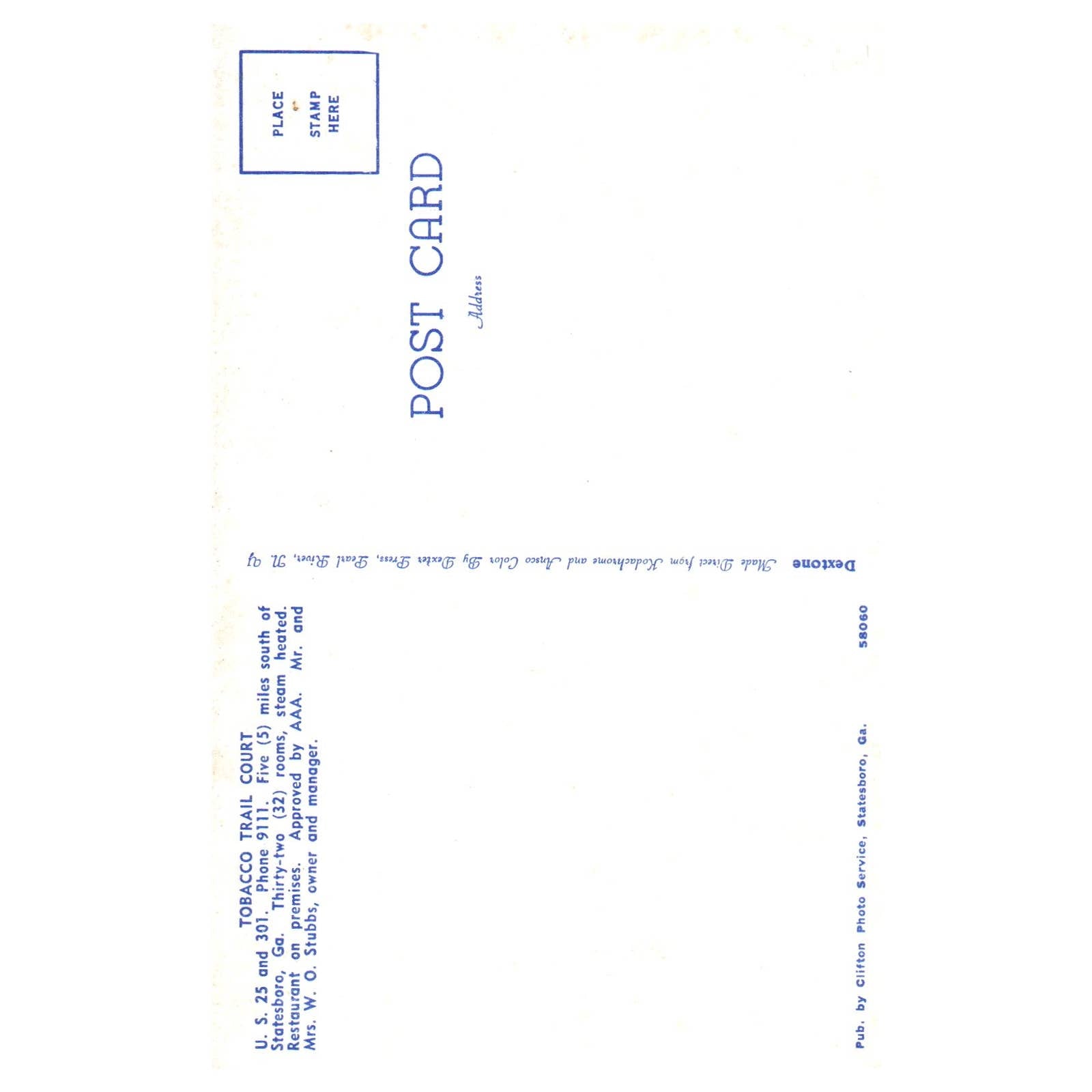 Tobacco Trail Court Statesboro Georgia W.O. Stubbs - Postcard TJ8-2