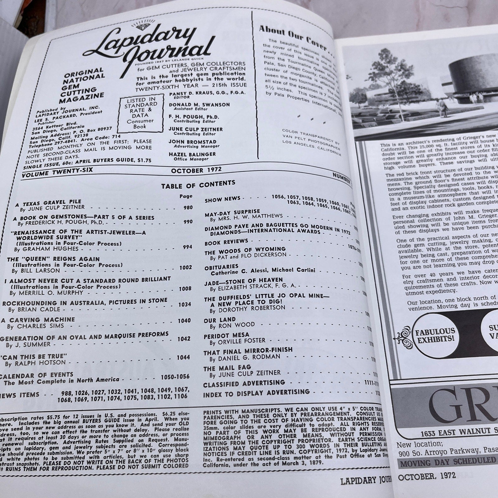 Tourmaline and Morganice Pala CA - Lapidary Journal Magazine - Oct 1972 M24