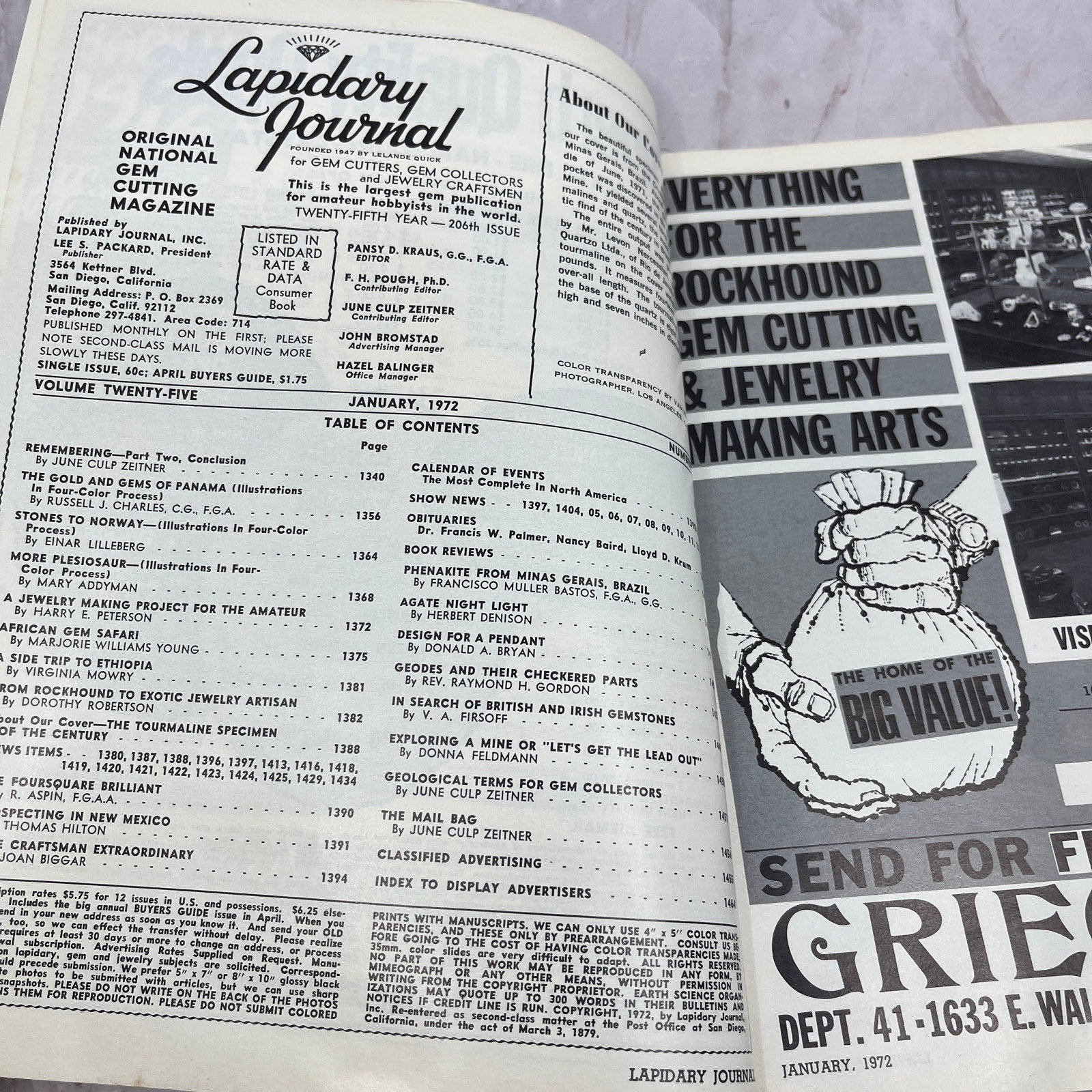 Tourmaline and Quartz Cruzeiro Mine Brazil - Lapidary Journal Magazine - Jan 1972 M27