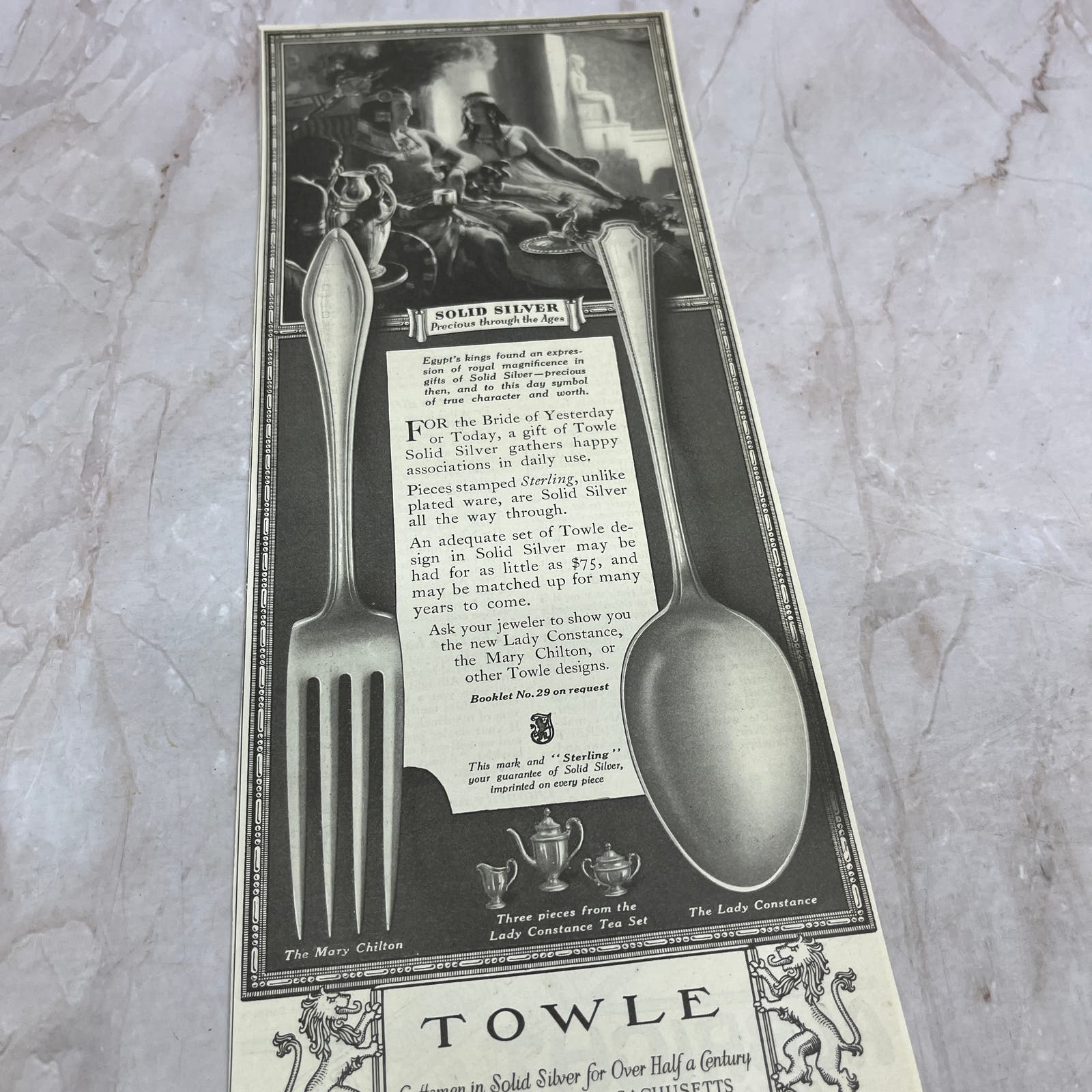 Towle Solid Silver Mary Chilton Lady Constance Newburyport 1924 Ad FL6-11
