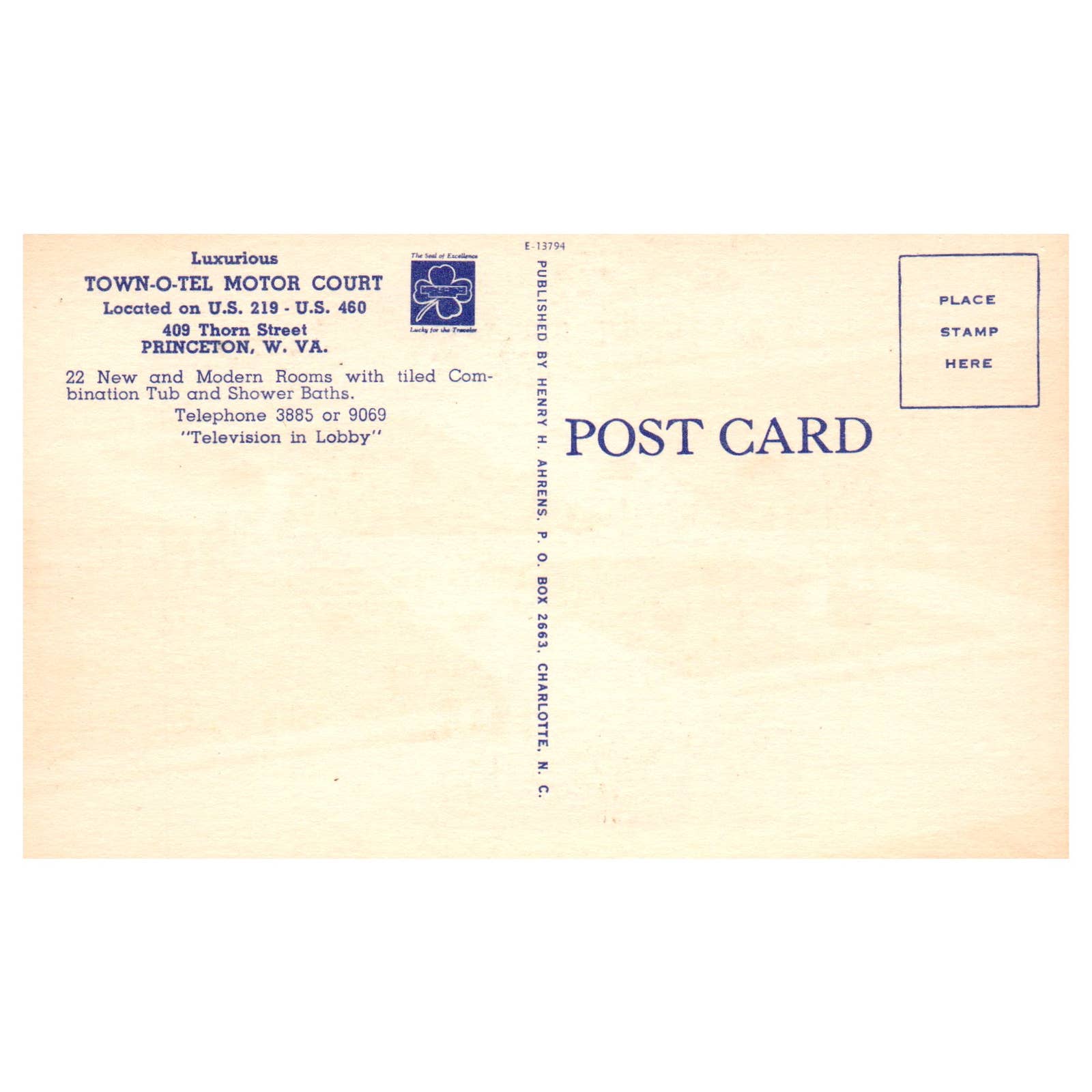 Town-O-Tel Motor Court Princeton West Virginia - Postcard TJ8-2