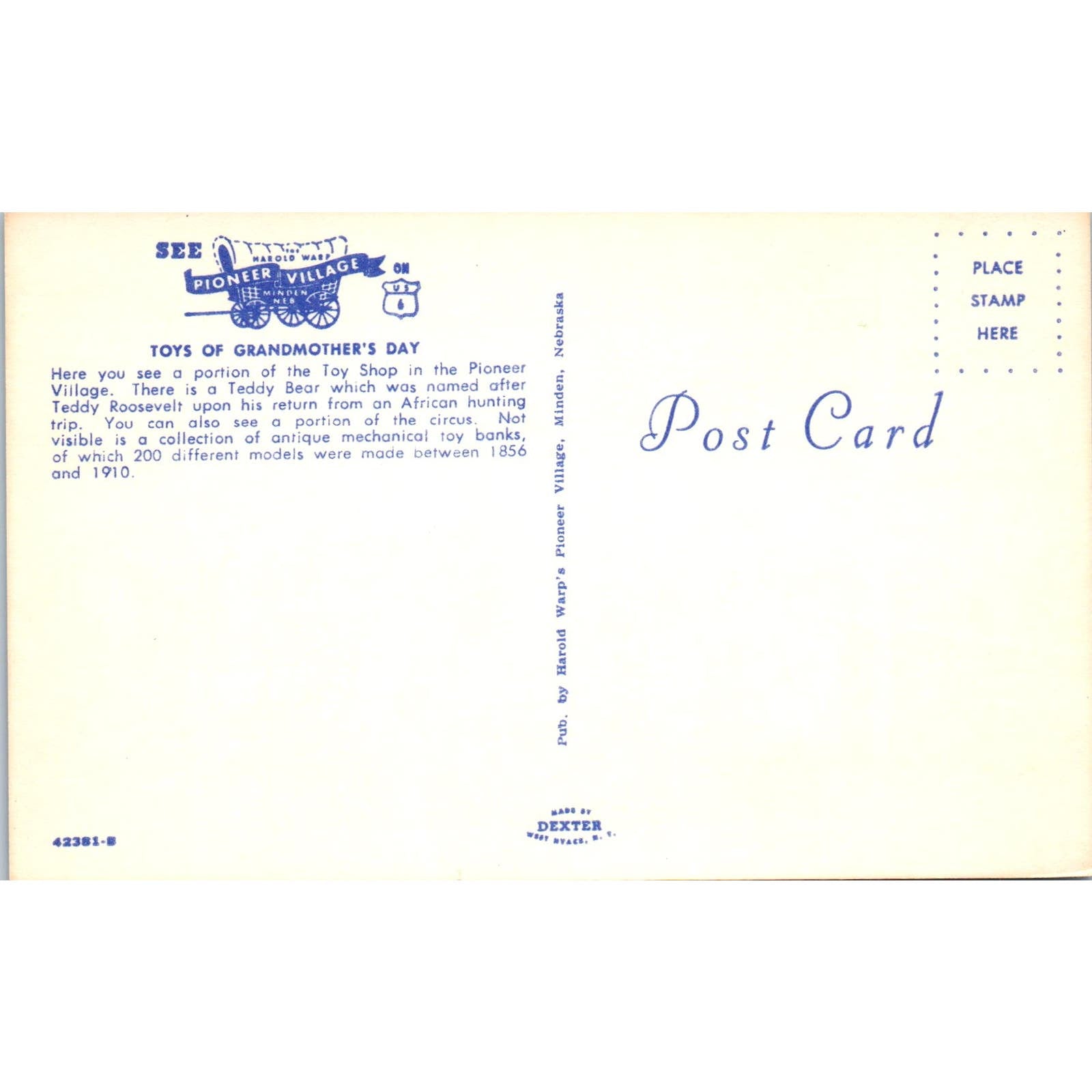 Toys of Grandmother's Day Harold Warp Pioneer Village Minden NE Original Postcard PB8
