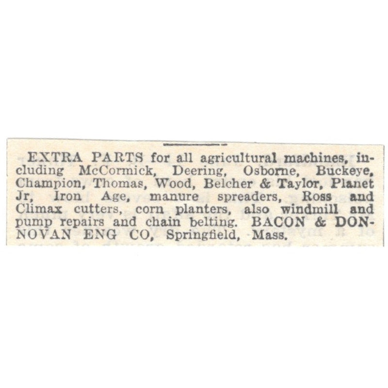 McCormick Deering Parts Bacon & Donovan Eng Co Springfield MA 1905 Magazine Ad AF1-NES1