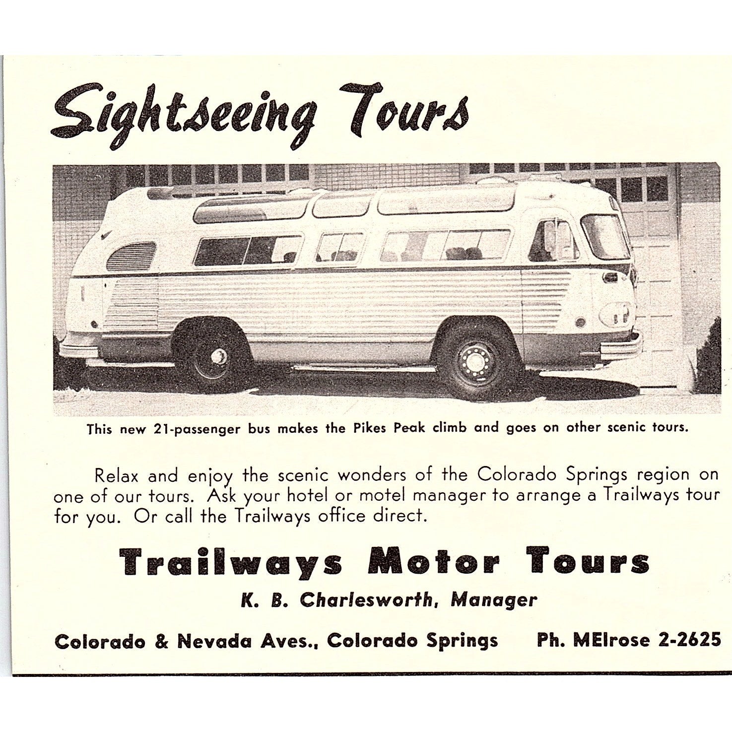 Trailways Motor Tours K.B. Charlesworth Colorado Springs CO 1958 Ad AG1-H4