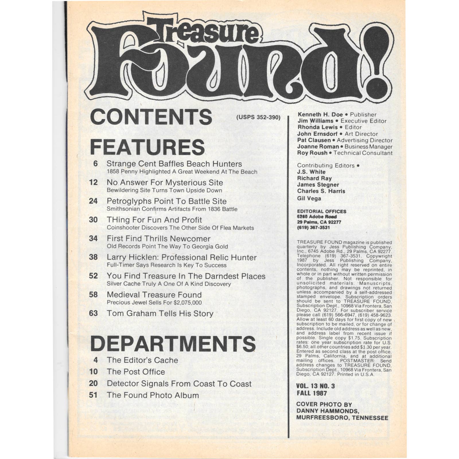 Treasure Found! Magazine 1987 Fall Metal Detecting Gold Diamonds M2