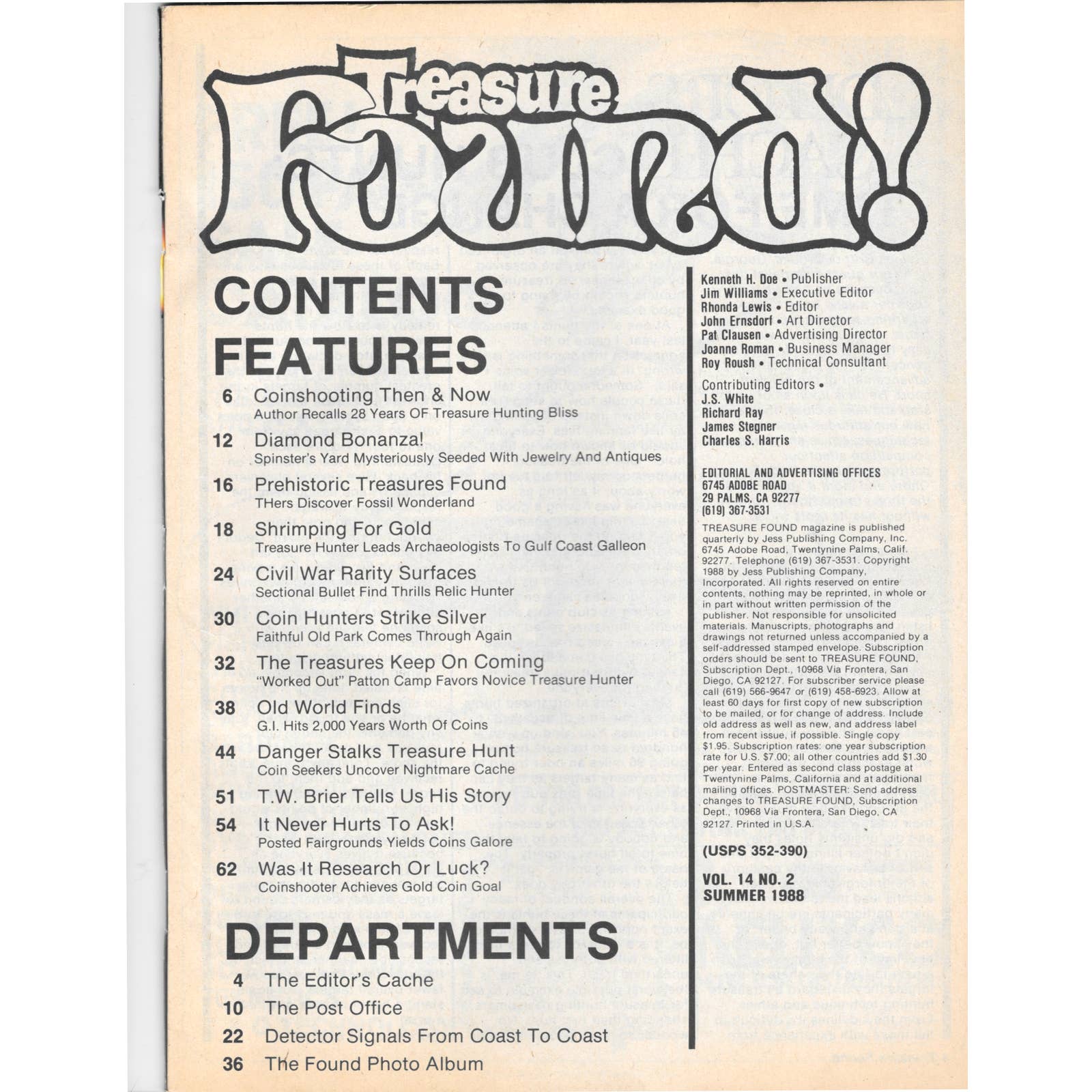 Treasure Found! Magazine 1988 Summer Metal Detecting Gold Diamonds M2
