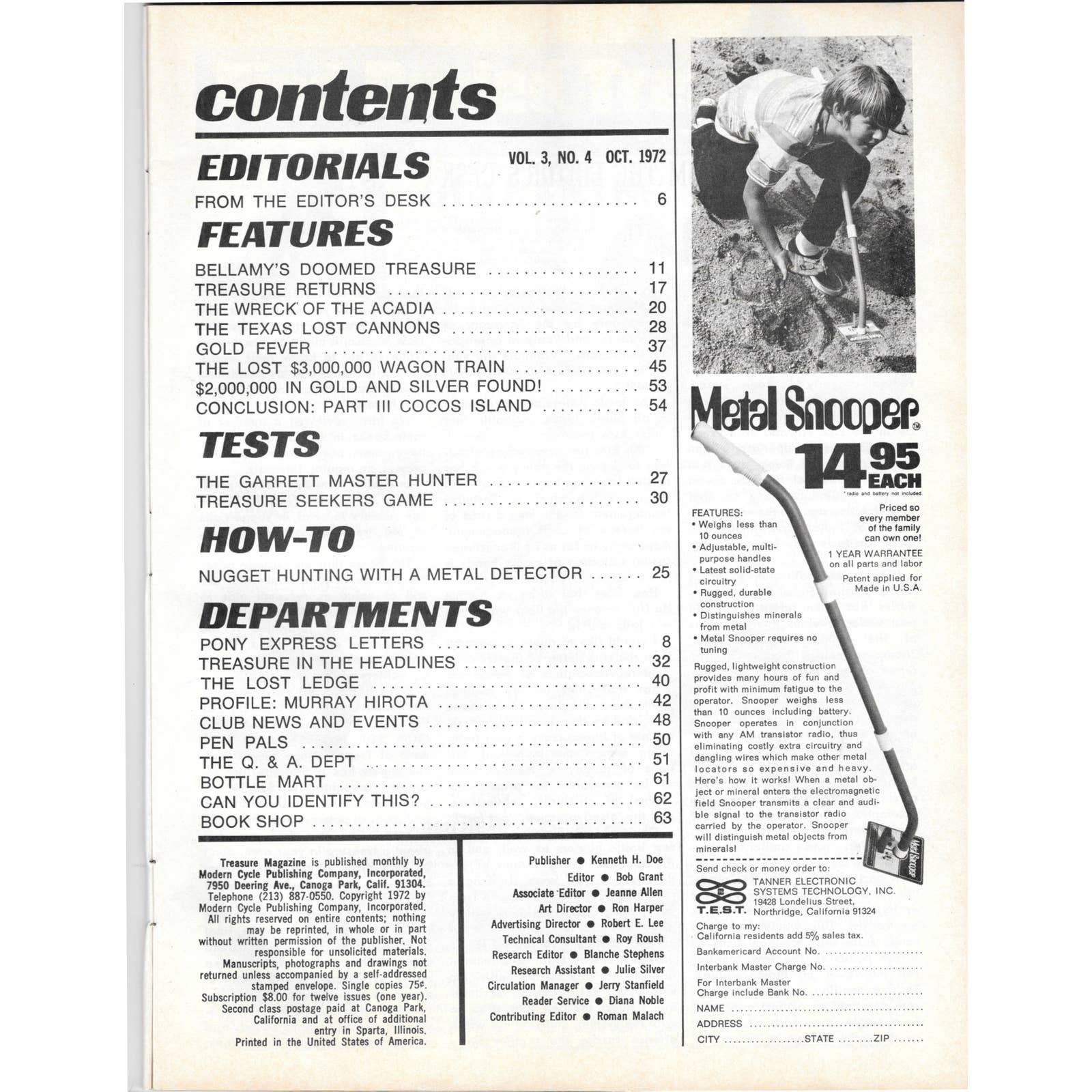 Treasure Magazine - Treasure Hunting Gold Mining Metal Detecting Oct 1972 M4