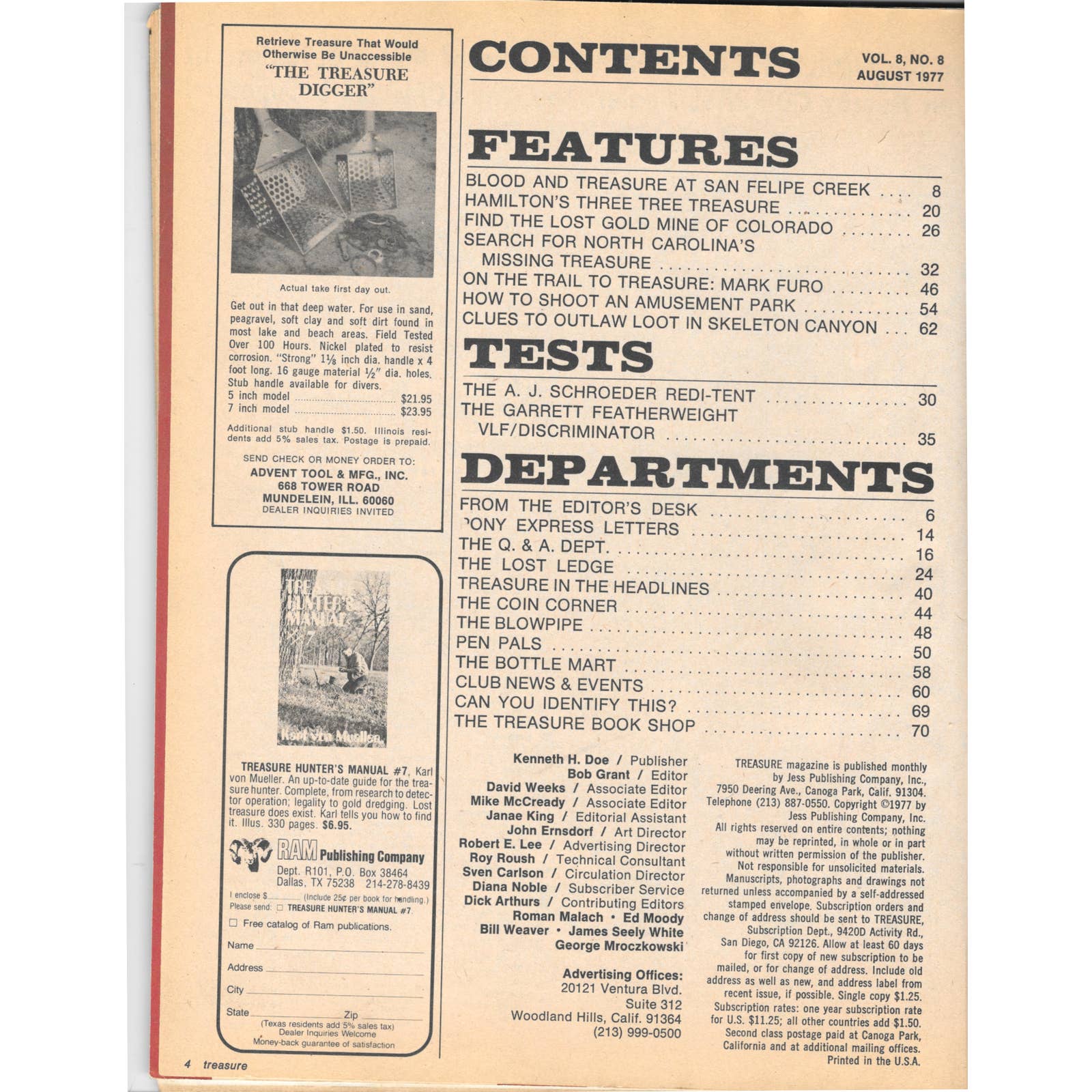 Treasure Magazine - Treasure Hunting Metal Detecting Aug 1977 M3