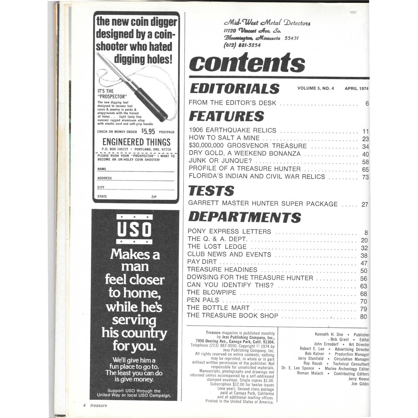 Treasure Magazine - Treasure Hunting Mines Buried Metal Detecting April 1974 MB4