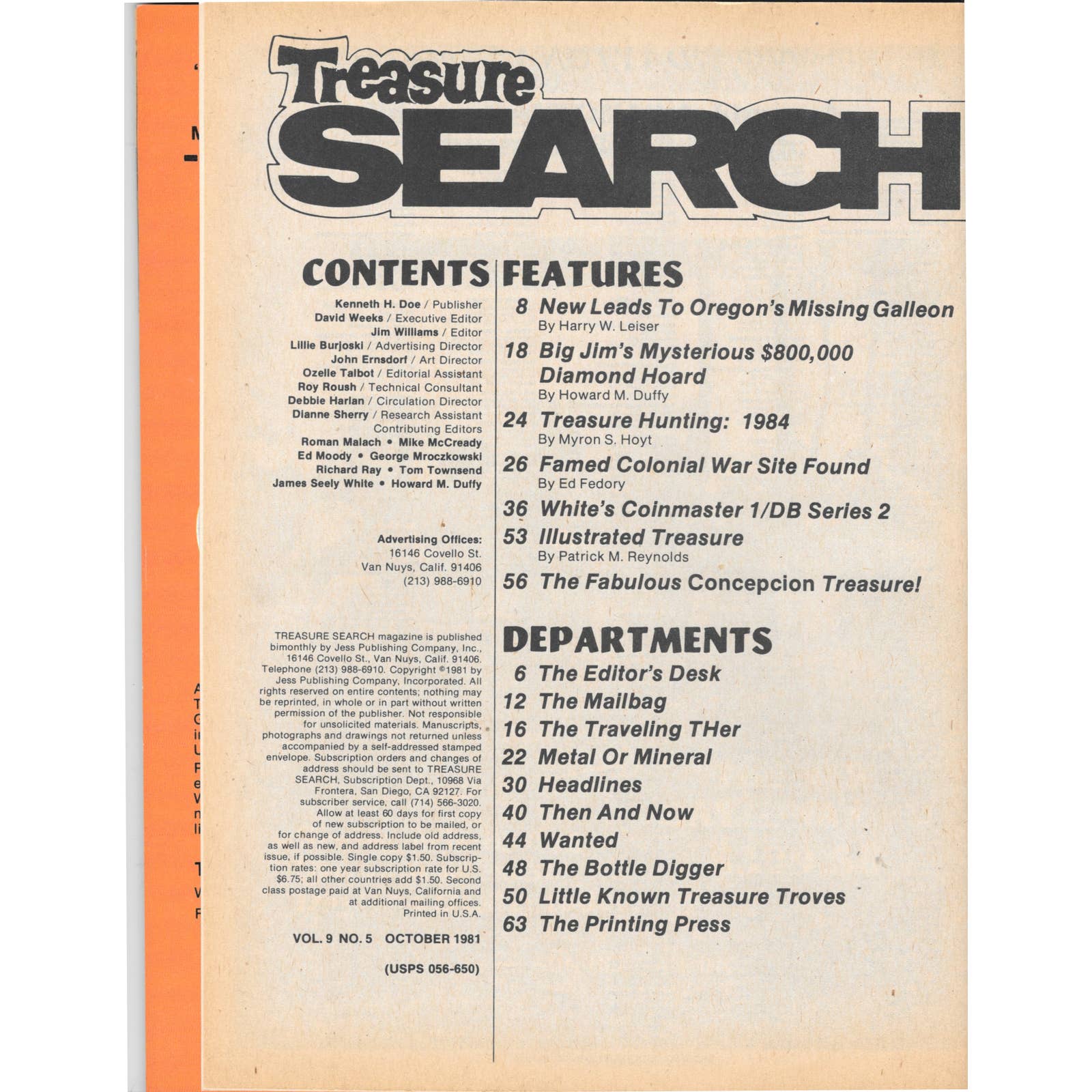 Treasure Search Magazine 1981 October Metal Detecting Gold Diamonds M2