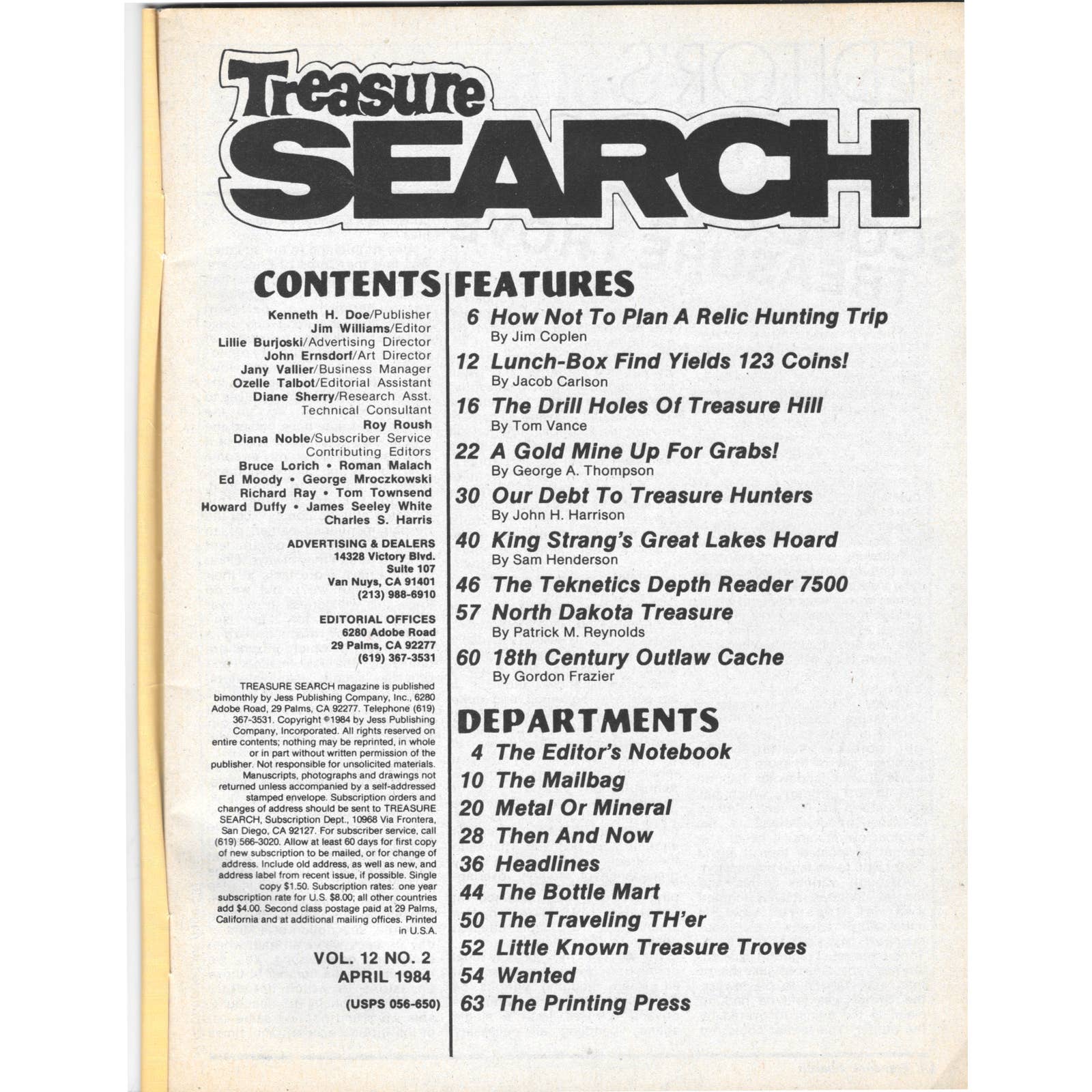 Treasure Search Magazine 1984 April Metal Detecting Gold Diamonds M2