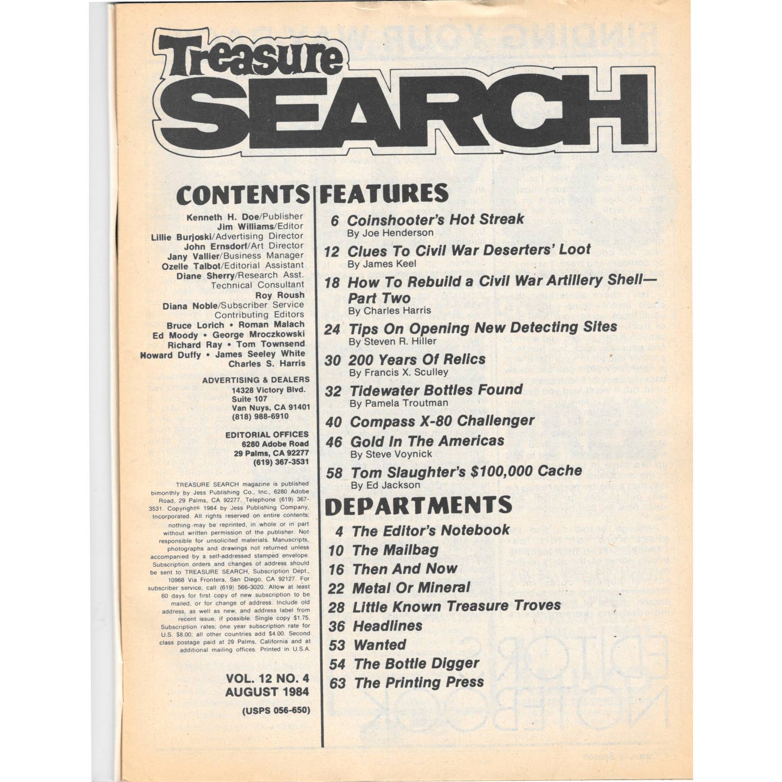 Treasure Search Magazine 1984 August Metal Detecting Gold Diamonds M2