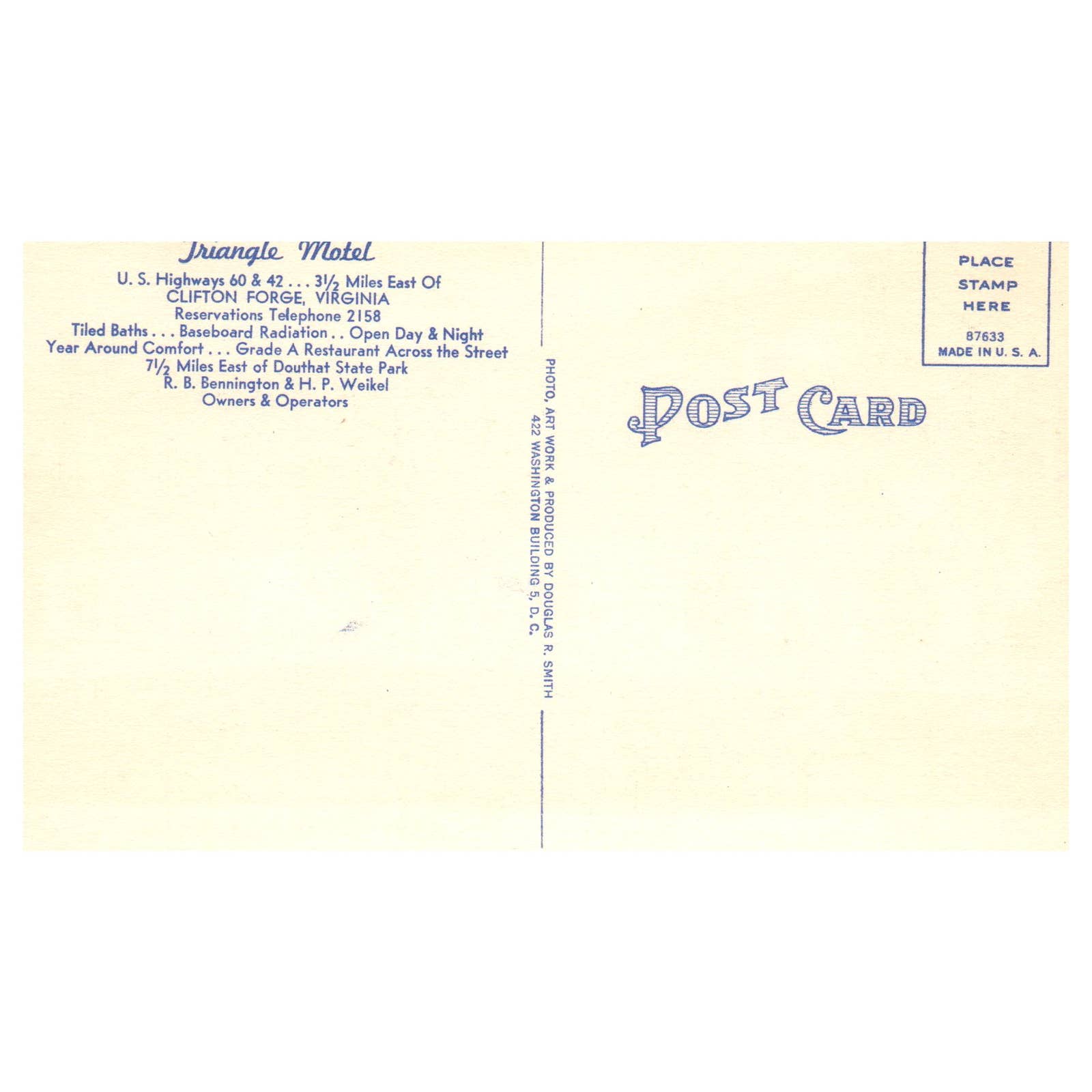 Triangle Motel Clifton Forge Virginia RB Bennington HP Weikel - Postcard TJ8-2