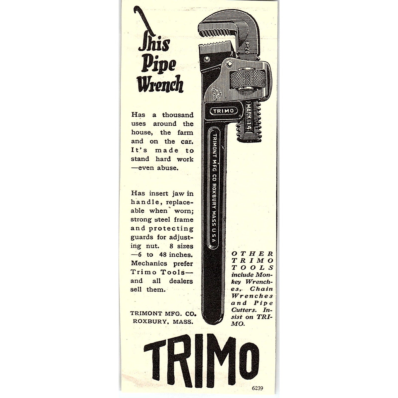 Trimont Mfg Co Trimo Pipe Wrench Roxbury MA 1924 Ad AG3-H2