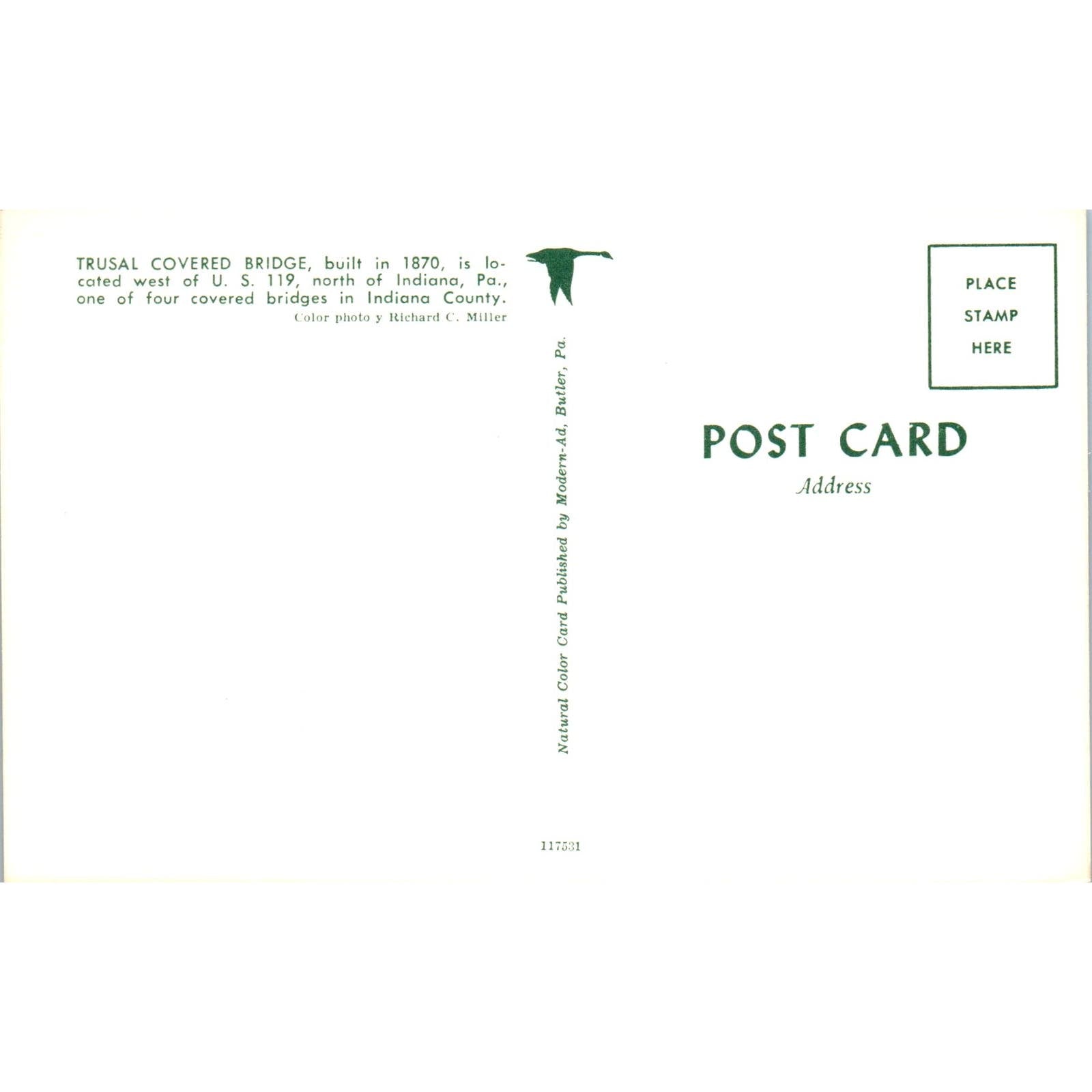 Trusal Bridge Indiana County PA Covered Bridge Postcard PC7