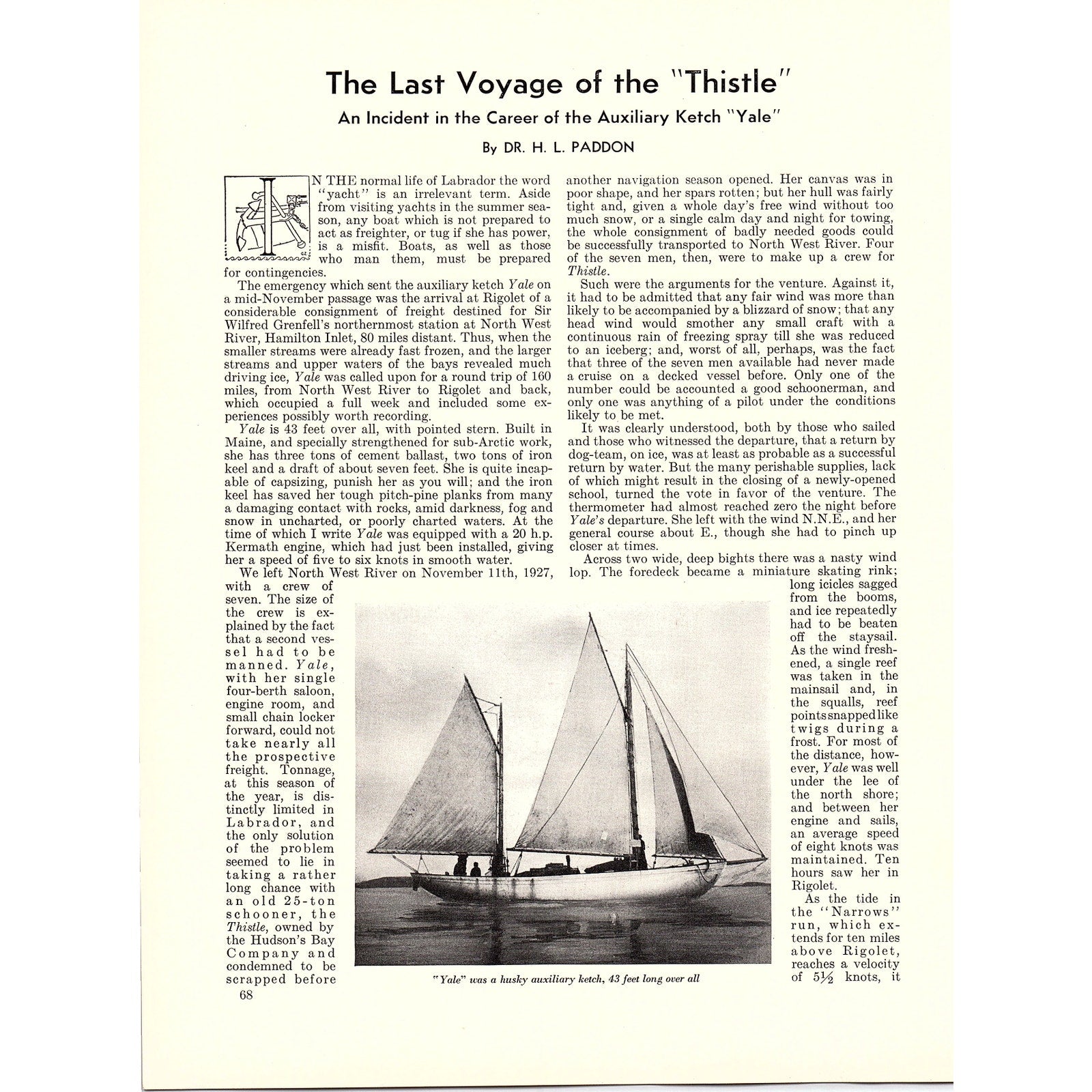 Approx 8.5x11.5". Original piece taken from 1932 Yachting Magazine. May have blemishes you would expect from something this age. See pics for condition.