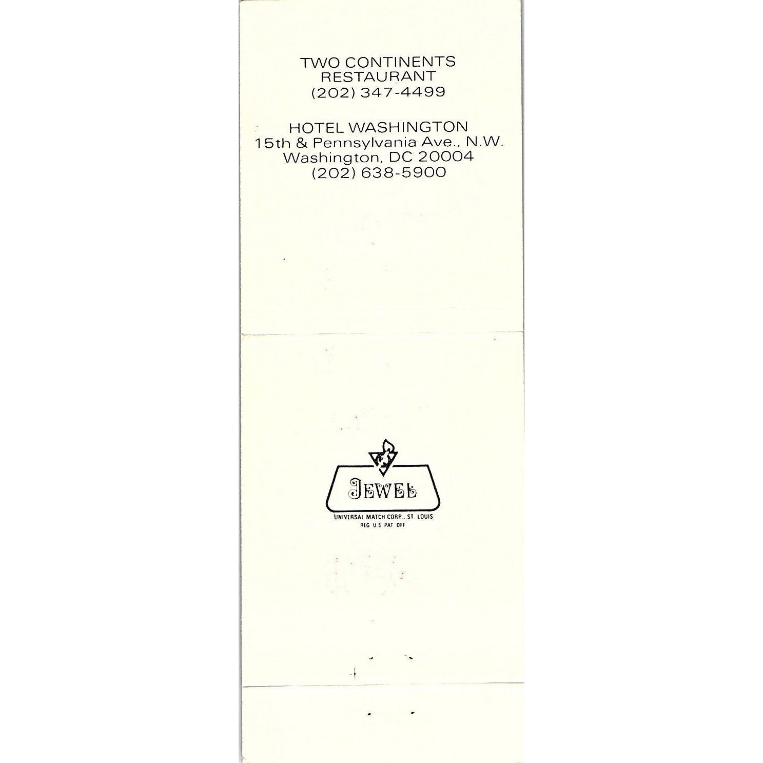 Two Continents Restaurant Hotel Washington DC Vintage Matchbook TB6-MB2-7