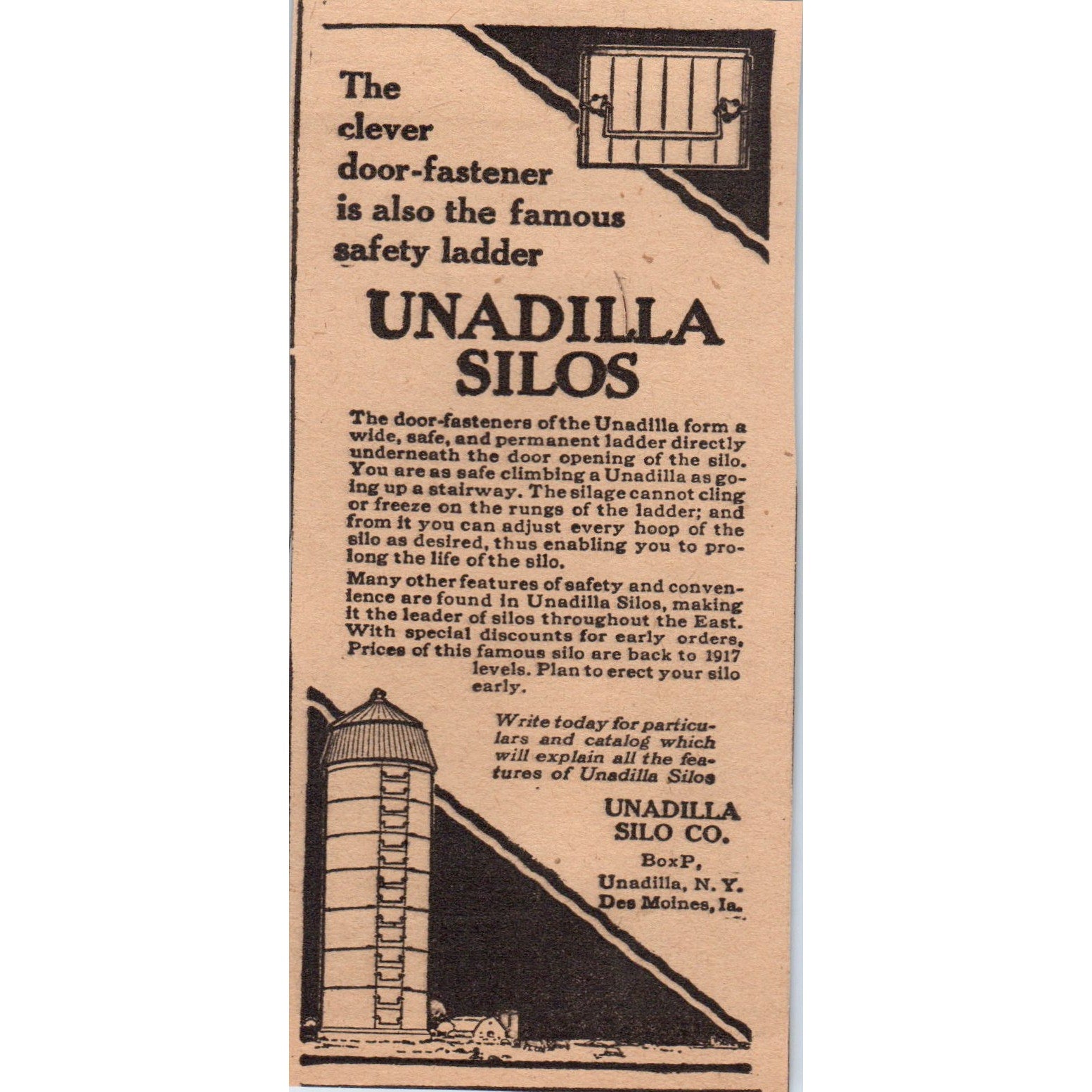 Unadilla Silo Coo Des Moines IA Unadilla NY 1922 Magazine Ad AF2-A5